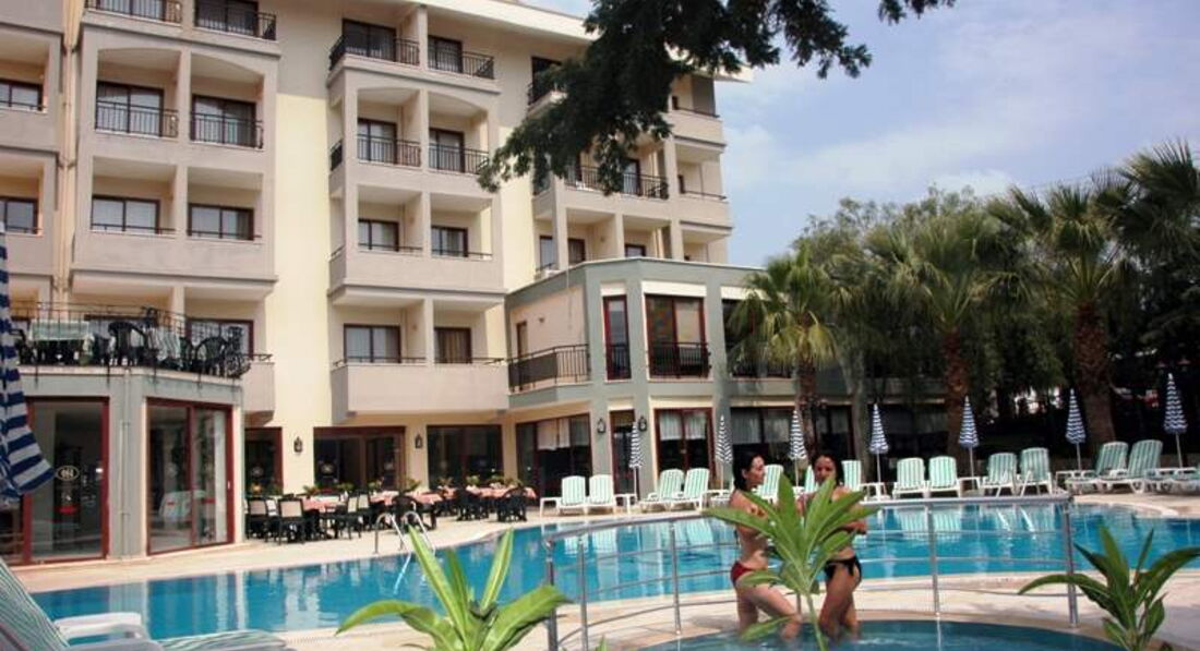 Если Вы хотите отдыхать без детей, то вполне можно выбрать этот отель, понимая куда вы едете, потому что у отеля есть плюсы: до моря минуты 2, до пляжа отеля минут 5, и он неплохой, в апреле все пляжи отелей открыты и мы могли купаться и загорать где угодно, но ходили только на свой пляж. Рядом с отелем два маркета недорогих и банкомат, который выдаёт и лиры, и доллары, и евро. В пешей доступности Античный город Сиде, там красиво.