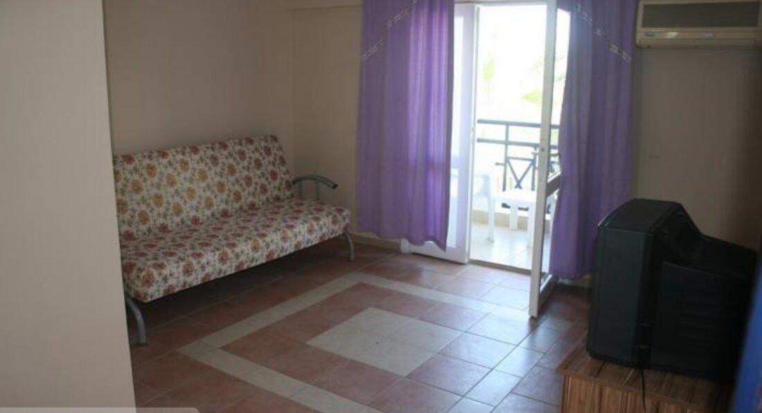 Отдыхали вдвоем с дочерью в августе 2013 года. Мы жили в двухкомнатном номере № 236. Все, кто приходил к нам в номер, говорили, что мы живем очень даже шикарно. Ну, действительно, в номере есть двухспальная кровать, диван, кресло, холодильник, кондиционер, фен и т.д. Правда, дверка от душа стояла отдельно, у стены, поэтому, вода постоянно попадала на пол, а собрать ее было нечем. Туалетную бумагу не добавляли, но мы ее сами нашли недалеко от нашего номера, как и тряпку (это было полотенце). За 2 недели в нашем номере уборку не проводили. Мы убирали сами, нам было не влом. При заселении мы видели несчастную попытку уборки номера: молодой турок просто полил пол в душе, погонял эту воду по туалету шваброй, а затем мокрой тряпкой повозил посередине комнат. Поэтому, когда к нам дважды за 2 недели приходили с намерением убраться в номере, мы им отказывали (тряпку-то мы уже раздобыли). Полотенца нам тоже не меняли ни разу, они были хоть и постиранные, но были все в пятнах и с дырками. В номере отсутствуют гели, шампуни, зубная паста! Поэтому берите с собой! А в некоторых номерах не было и постельного белья и полотенец. Если вы хотите, чтобы у вас были хотя бы полотенца и постельное белье, подарите на ресепшене шоколадку. Лучше "Аленку", чтобы было видно, что из России. Они очень любят русский шоколад.