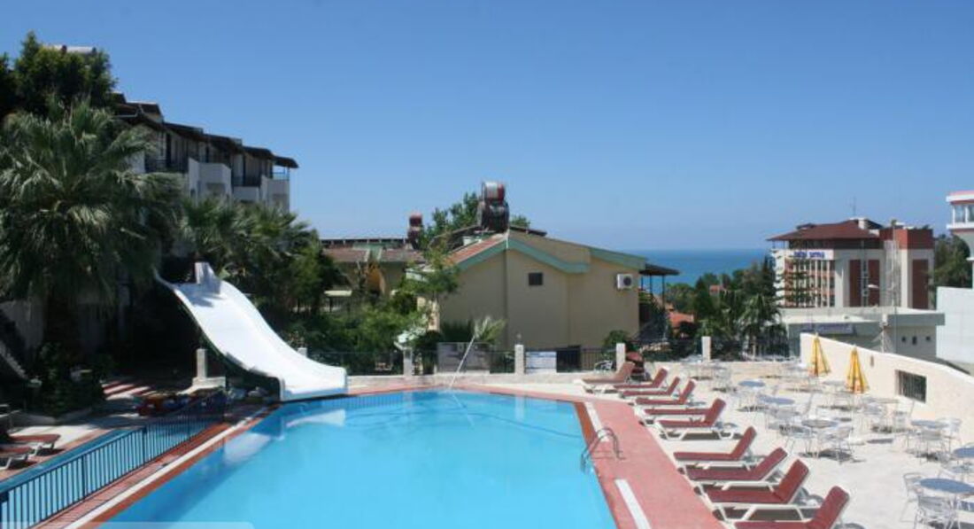 Скажу сразу, что я знала куда еду. И мне важно было только море. Но хотелось бы предостеречь туристов, кто не очень серьезно относится к отзывам. Все что пишут про отель-правда. Заезд начинается с вымогательства денег за номер. Вымогает сам управляющий. Про еду, сервис писать не буду, все уже написано. А вот про персонал и отдыхающих в этом отеле турков напишу. Молодые ребята тренируются на наших девочках-малолетках в поцелуях. Целуют не по-детски. Бармены "клеят" девчонок для этих турков-отдыхающих. В наглую обращаются с подобными предложениями. Музыка только турецкая на полную громкость. Не поговорить у бассейна, глушит. Обслуживающий персонал парни малолетки, видно чтобы платить меньше за работу. Так они и относятся к работе и к отдыхающим. Нет у отеля хорошего хозяина. А жаль, место замечательное, пляж рядом. Да и из отеля можно сделать конфетку.