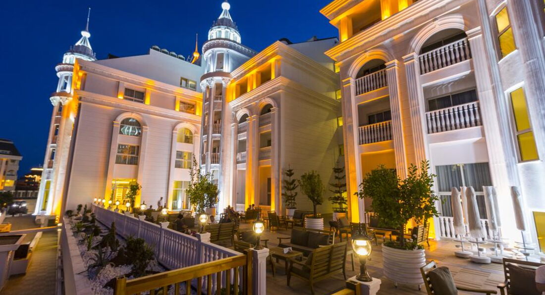 В целом отель соответствует пятерке. Если не напрягает отсутствие территории. Но вокруг столько рынков, где достаточно дешевые цены на одежду ( например джинсы турецкого производства стоили от 10 евро, майки в стиле подделка под лакост и т.д. от 3 евро, мы не ожидая купили целый чемодан вещей, качество которых прекрасное). Сумма которую мы заплатили за тур составила 70000 рублей из Самары на полных 11 дней и 11 ночей вместе с топливным сбором, и получился еще и поздний вылет, что очень порадовало. Отдых удался. Отель советую. Вернулась бы еще раз.