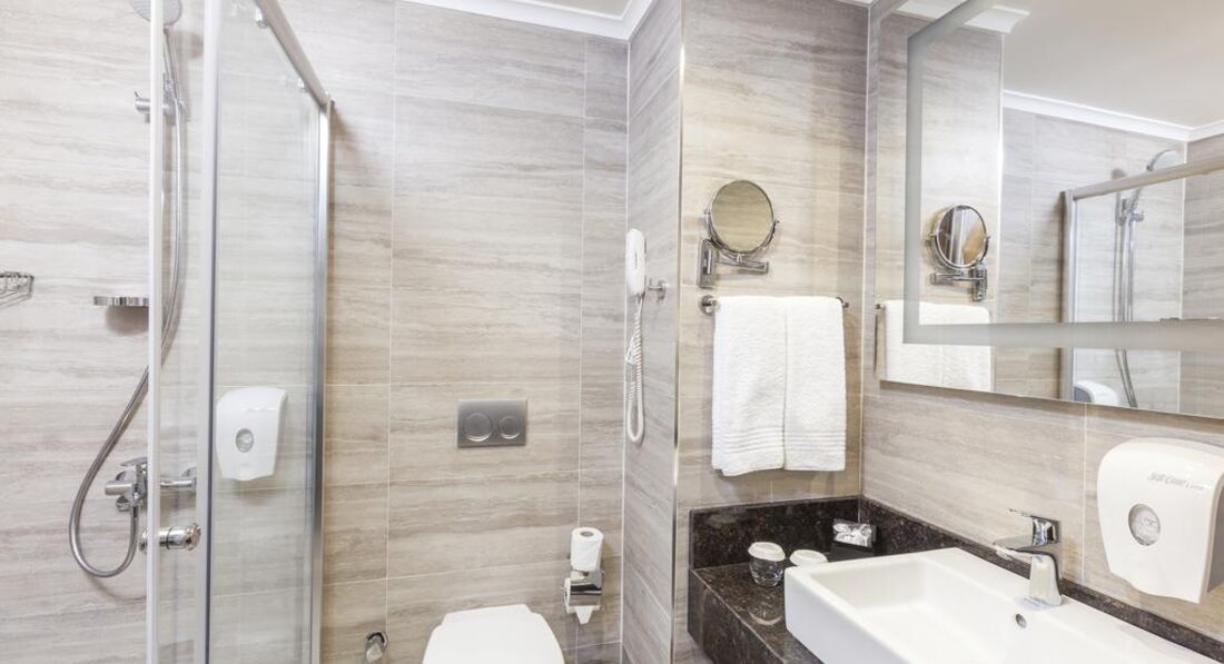 Отель новый, чистый и очень приличный. По приезду заселили за 5 минут. Отельные говорят на английском, либо на немецком. Единственный русского-говорящий был на ресепшн. В номере сейф бесплатно, чайник, чай, сахар, кофе, в холодильнике напитки, вода бесплатно. немного пробивал Wi-Fi, уборка ежедневно, смена белья раз в три дня. в Ванной комнате фен, душевая кабина, жидкое мыло и гель для душа / волос. Полотенца на одного - большое, среднее и для ног.