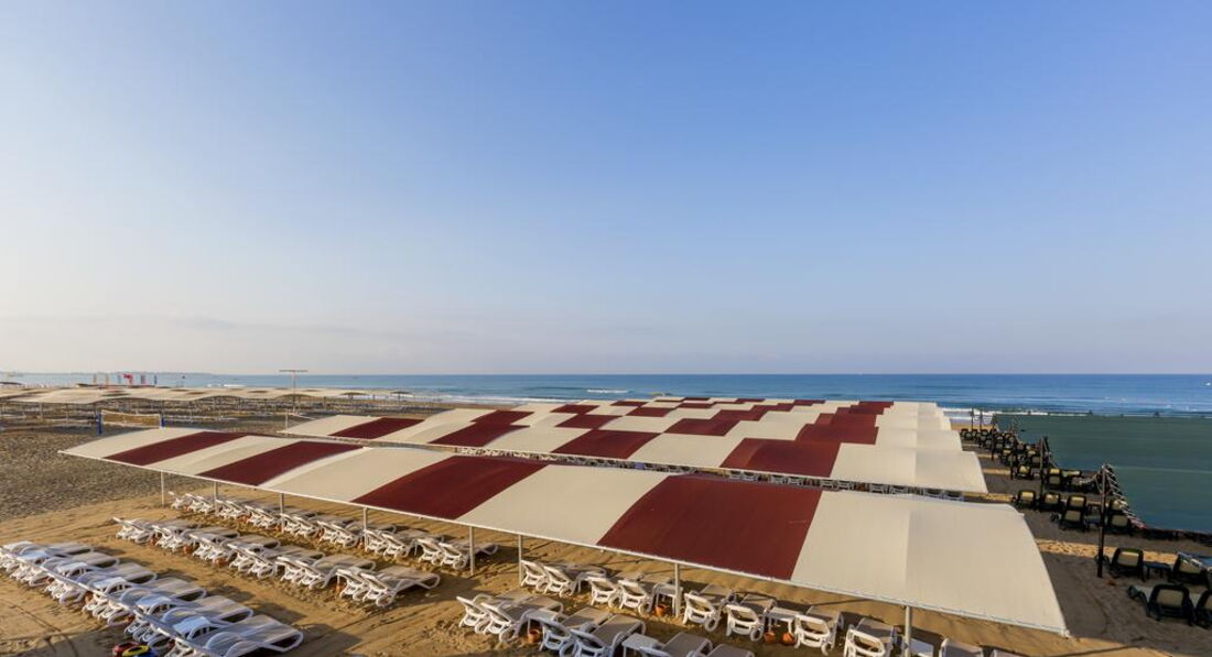 Пляж очень хороший лежаки всегда есть, море тёплое, но во второй половине дня всегда немного штормило. Идти до пляжа минут пять, есть шатл до пляжа, но реально дойти быстрее чем ждать его. На территории пляжа стоят холодильники набитые маленькими бутылочками с водой и стаканчиками с айраном, это большой плюс! Мы ездили один раз. На пляже бар, там как везде пиво, вино, раки, кофе, чай, газировка. С 11 до 12 пекут лепешки с начинками на выбор. С 12.30 начинается обед, но мы обедать ходили в отель. На пляже подавали гамбургеры, пиццу, суп, жареную картошку фрукты и пироженки.