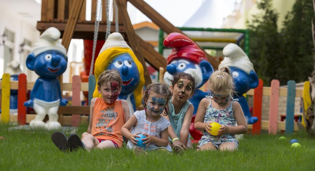 Анимация - ее нет. Отель для немецких пенсионеров. Детские горки почему-то работают всего 2 часа в день( видимо из-за экономии электроэнергии) с 11 до 12 и с 14 до 15 - очень не удобно по времени. Горки какие-то неудачные, каждый день дети падают, разбивают подбородки, ездят, накладывают швы и ничего не меняется. Аква-аэробика с 11 утра - можно уснуть в воде (опять же - "немецкие пенсионеры рулят"). На пляже - волейбол, но только ограниченное время... мячик очень ценный - оставить не могут. Вечерами бывают представления, но в этом узком пространстве, где расположена сцена, курят невыносимо...Господа собственники, если у Вас нет территории отеля-организуйте анимацию на пляже!!!