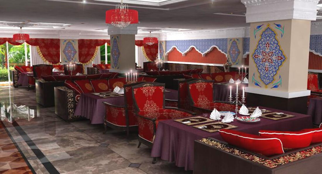 Бари та ресторани: головний ресторан – міжнародна кухня, 250 чол., критий, з терасою, є дитяче та дієтичне меню; бар на пляжі (10:00-18:00), бар біля басейну (10:00-24:00), лобі-бар (10:00-24:00) - безкоштовно, диско-бар (23:00-02) :00) – платно.