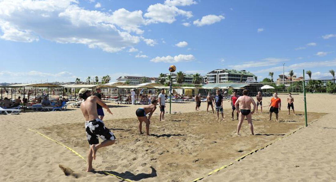 Было огненное шоу,пенное шоу,салют,карооке,танец живота.Пляжный волейбол,бочча(игра шарами на песке),гимнастика на пляже и аквааэробика редко.Анимация на немецком.Да и вообще в этом отеле слабо говорят на русском,в основном на немецком.Но зато знают русские слова:карашо,привет,как дела,отлично,пока:)