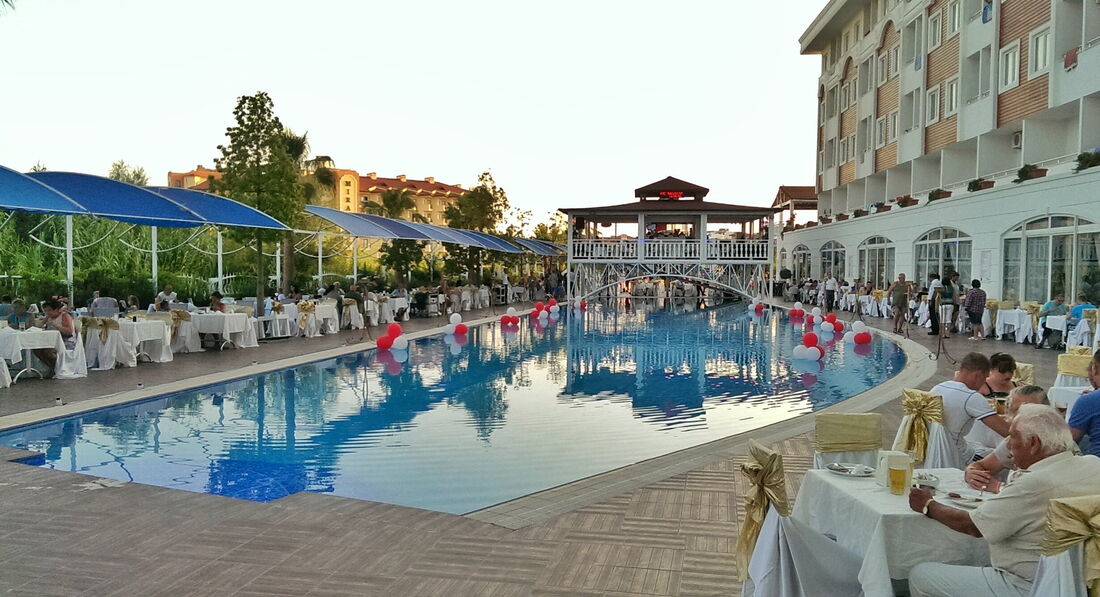 По четвергам в отеле проводится турецкая ночь. Выносят торт-мороженое и угощают им всех гостей. Повара и официанты танцуют турецкий танец. Представляют всех менеджеров отеля, включая генерального менеджера. Также мне понравилось, что генеральный менеджер отеля лично всё контролирует, заходит в ресторан в обед и ужин, смотрит за порядком в отеле.