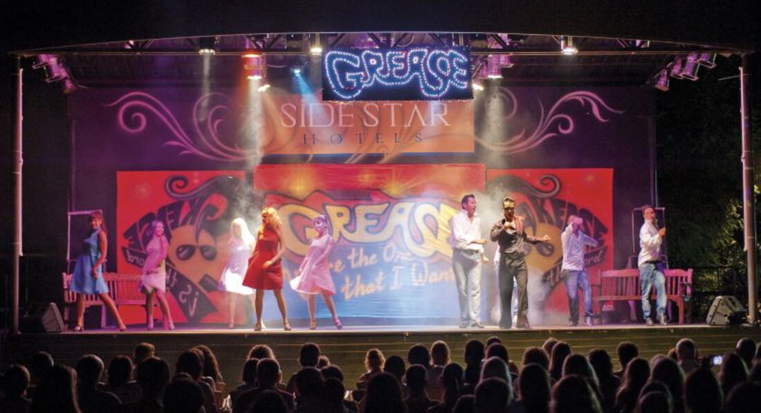 Два раза попадали на турецкую ночь.Она там по четвергам.Столы и стулья выносили возле большого бассейна и украшали бантами,красиво.