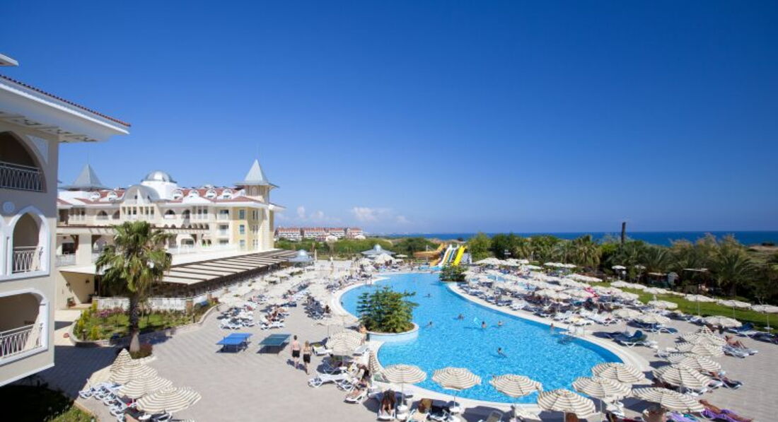 Переписываю отзыв после второго посещения этого отеля. При регистрации менеджеры понимают русский язык , хотя дают понять, что как бы, не понимают. Поэтому разговаривайте с ними как самим собою. Обслуживающий персонал с работой с иностранными клиентами должен иметь высшее специальное образование. В отеле одни немцы, И отношение к ним совершенно другое , чем к нам...... Территория небольшая. Номера как номера, чайник в номере. Еда нормальная. Там чисто. Отличный пляж. Волейбол. Пологий вход, песок. Бар на пляже бесплатно. Сейф и мини бар бесплатно. Все ездят на маршрутах в магазины, на рынок, в Сиде. Анимация только для немцев и неинтересная. Так что наряжайтесь и приезжайте .......С детьми там хорошо.