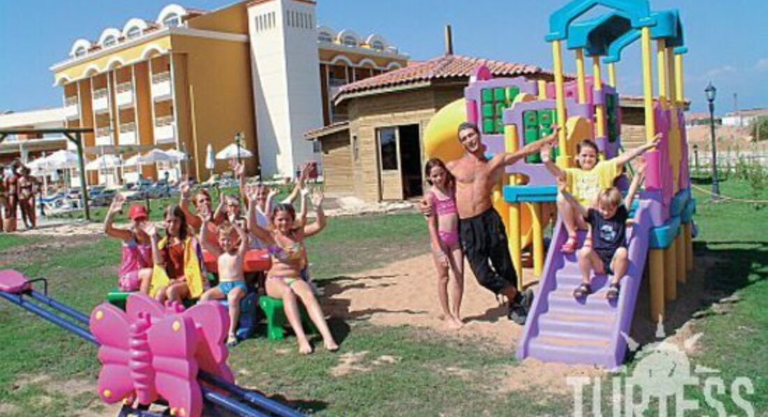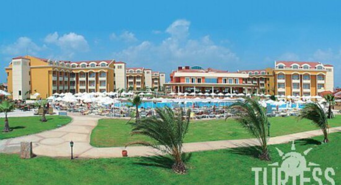 Побывали как в сказке!Отель ориентирован на туристов с детьми,для детей там есть все необходимое от мебели до детских площадок везде,даже на пляже.Даже есть детские блюда в ресторане. Мы прилетели в 7 утра,сразу нас заселили,номер очень понравился-стандарт,как и заказывали.Фото прилагаю.Есть все необходимое-бесплатный сейф,постоянно пополняемый бесплатный бар с пивом и напитками.Телевизор, большой шкаф-купе,Уютный балкончик с приспособлением для сушки белья.Телефон.Удобные кровати ,белье меняли через день,а полотенца-по требованию,хоть каждый день.Кстати, в номерах тихо и вечером так как все развлечения проходят немного подальше от отеля ближе к морю. Питание отличное,все свежее.Большой выбор фруктов ,овощей,выпечки,сладостей.Мясо,кроме свинины,естественно и рыба в разных видах. Персонал вежливый и уважительно относится ко всем не зависимо от национальности,хотя большинство там немцев.Правда маловато русскоговорящего персонала,особенно на рецепции и в анимации.Но если вас не поняли,обязательно найдут русскоговорящего сотрудника и вопрос любой решат. Территория очень красивая,всюду цветущие экзотические растения,розы,пальмы.Можно отдыхать на качелях,под травяными навесами,в гамаках.Кроме бассейна и горок,есть несколько баров у бассейна и у моря,где можно и пообедать с 12 до 14 час. Есть футбольное поле . Мороженое бесплатное два раза в день у бассейна и вечером в ресторане.К морю надо пройти или проехать на микроавтобусе 100-150 метров,но лучше пройти мимо тренажеров по красивейшей территории.Море чистейшее,вход хороший песочек.Бесплатные шезлонги с матрасиками.Можно платно покататься на банане,ватрушке,скутере,полетать на парашуте над морем.На пляже охрана и спасатели.Магазинчики при отеле дорогие,но в 500 метрах есть рынок.А раз в неделю там устраивают шоу"Турецкая ночь" с праздничным ужином в ресторане у бассейна и выступлением национальных артистов. Короче в следующем году только туда,и уже вместе с друзьями!