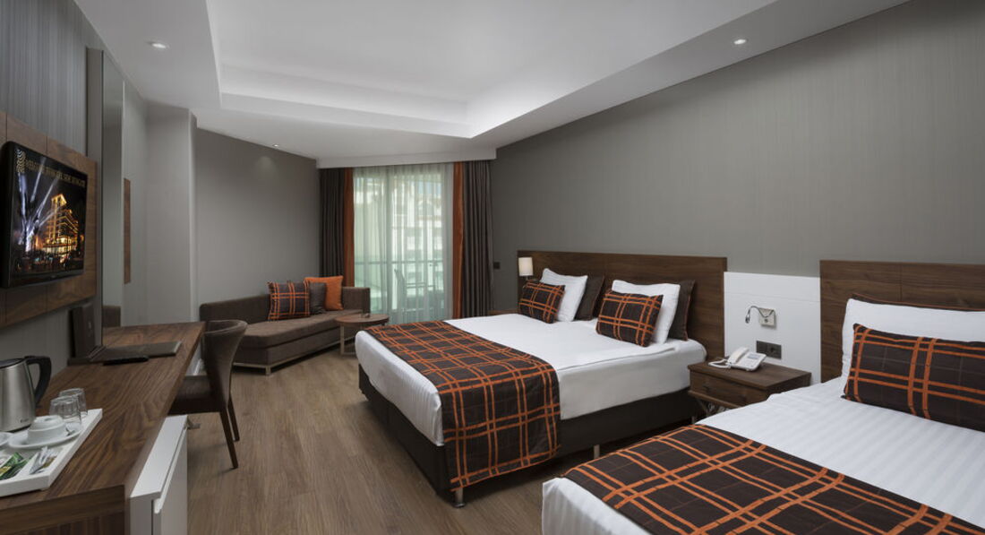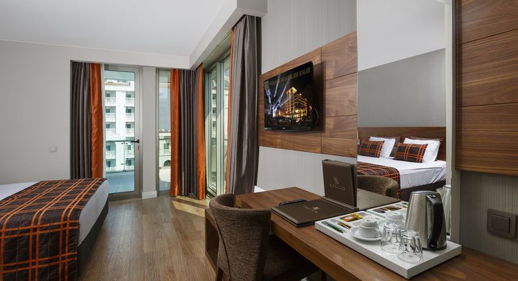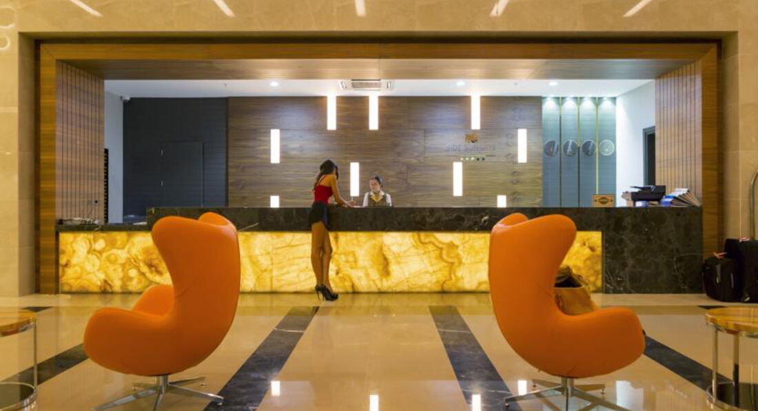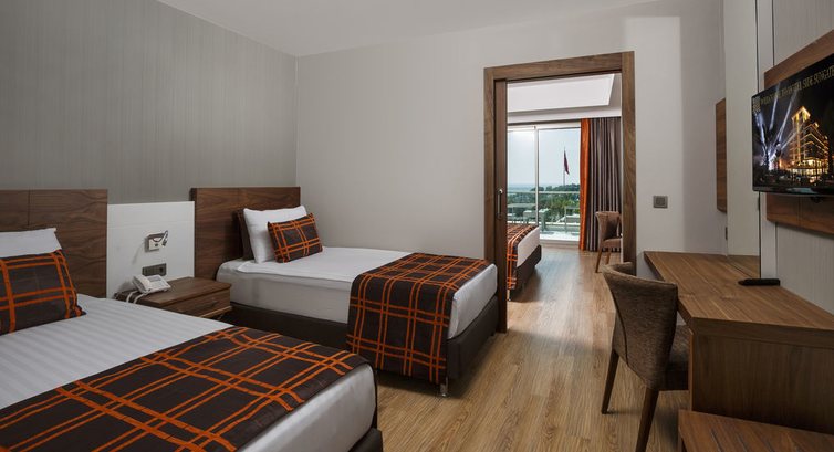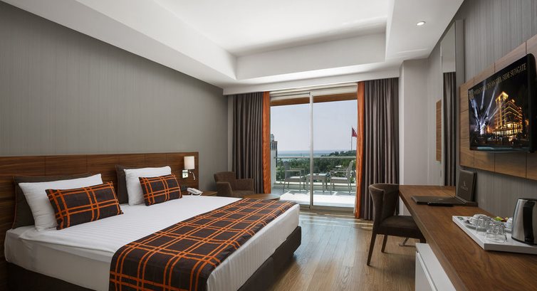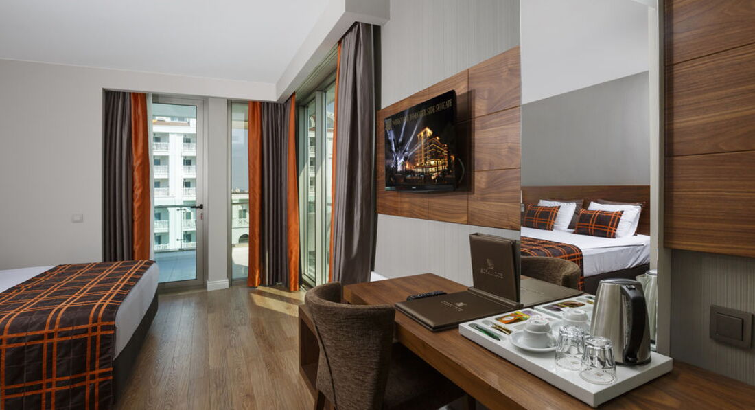 Приехали в отель в третьем часу , номер дали спустя 1,5 часа , сослались на полную занятость отеля , многие ходили с двумя браслетами ,второй Султан оф Сиде , не знаю уж у кого не было мест , но находились они у нас .На ресепшене на русском не говорят ,да и вообще в отеле . Гест , бывшая наша соотечественница ,работает со всеми гостями , Золина ,очень приятная девушка , всегда поможет .Номер был стандарт LAND VIEW ,дали на 5 этаже , что порадовало ,с частичным видом на море , собственно прямого вида там наверное несколько номеров и то не знаю какие они . В номере набор для чая , тапки , мыльные ,большой балкон , сушилка , хороший новый кондиционер ,тихий вообще не слышно .Дают два ключа , что удобно .Понятно что все новое чистое рабочее )Вот уборка номера ни какая , вот совсем ,ходили жаловаться , но толку ноль , кондиционер для волос клали и на том спасибо (забыла свой , купить негде рядом )Сейф платный , 2 евро в день , платить выгодно в лирах.