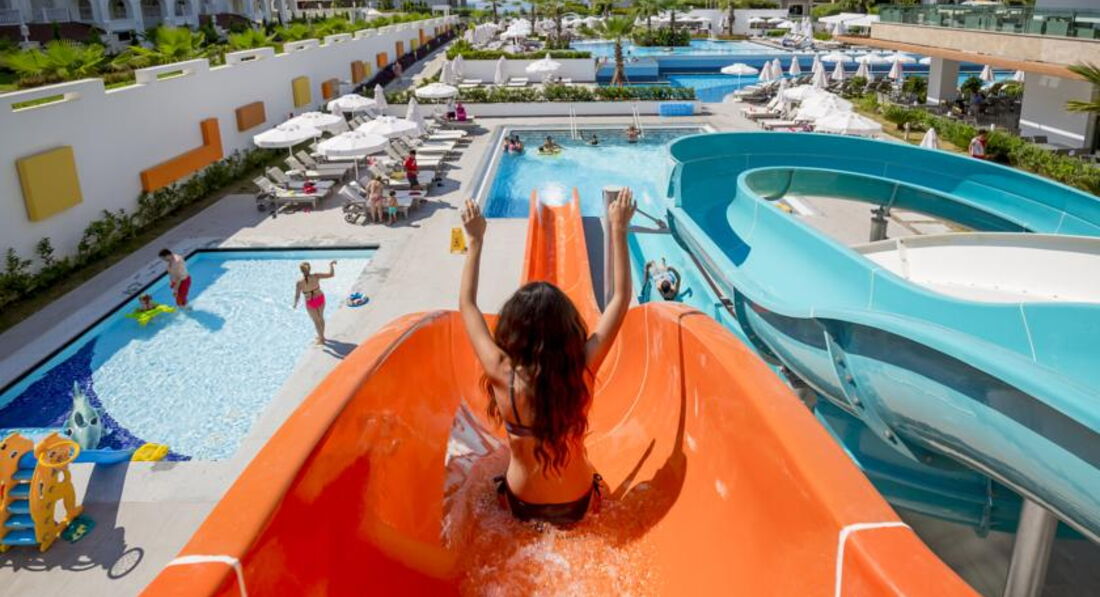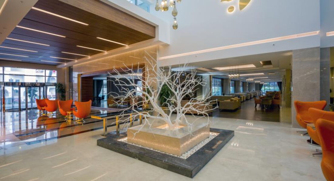 Здравствуйте. Вчера вернулись с отдыха. Отдыхали в этом отеле 10 дней. Захотелось сразу поделиться своими впечатлениями. Начну по порядку. Приехали в отель уже вечером. Нас сразу же отправили на ужин, пока мы кушали нас зарегистрировали, так что мы сразу прошли в свой номер. Мы бронировали номер с видом на море, а нас заселили в номер с боковым видом. Пришлось как всегда поругаться и нам пообещали что на следующий день нас переселят. и действительно перед обедом мы уже разместились в другом номере с прекрасным видом. Хоть отель и находиться на второй линии, но дорога до моря составляет мне кажется не больше 100 метров, что совсем не затруднительно и не заметно. По дорожке можно полюбоваться прекрасными цветами. Отель имеет свой пляж. Лежаков и зонтиков предостаточно (всегда есть свободные места). Пляжные полотенца можно менять каждый день. Все бесплатно. Прекрасное кафе на пляже, где можно посидеть выпить прохладительные напитки, а так же пообедать. В этом кафе на обед женщина печет прекрасные и очень вкусные пироги (точно не знаю как они называются) с различными начинками (творог-зелень, мясная). На пляжи можно заняться водными видами спорта. Единственный минус пляжа - это мужчина-уборшик. Приходя утром на пляж лежаки оказываются в песке. А мужчина ходит с метелкой и просто болтает с отдыхающими. около душа песок сгребают сами отдыхающие. Море изумительное. Песчаный пляж. Только мы ходили плавать чуть правее там вода чище и народу поменьше. Вернемся к отелю. Территория отеля не большая, но все же имеет 5 бассейнов. Начиная от бассейнов для самых маленьких заканчивая крытым бассейном. Все устроенно очень грамотно. Есть горки, где ребятня и не только они развлекалась от души. В дневное время у бассейнов работает аниматор. В лоби предостаточно диванов и кресел мягких, приятных на ощупь. Там можно в жаркие часы или вечером посидеть. Питание в отеле прекрасное. Много фруктов. На завтрак можно было заказать фреш за 2 евро бокал. Очень вкусный. Еда вся вкусная, разнообразная. Всегда было минимум три вида мяса и рыба. А пироженные - это что-то. Поварам отдельное спасибо за такую еду. Официанты приветливые и очень трудолюбивые. Два ресторана аля-карт, но можно было сходить только в один мы хотели сходить в итальянский, но проморгали было очень много желающих и мы не успели записаться. Но это нас совсем не расстроило так как уже повторюсь еда была и так великолепная. Анимация была каждый вечер. Сначала детская, потом для взрослых, но мы на нее не ходили, так что особо описать не могу. Так есть хамам бесплатно и спа платно. Жалко мороженное давали только с 15 до 16. Но это в принципе во всех отелях так же. Ну и наконец номер. Так как отель только что открылся вся мебель новая. Все в мраморе. Что очень понравилось - большие номера и наличие одной двухспальной кровати, одной односпальной и еще диванчика. Интерьер европейский. Сейф платный 2 евро в сутки. Кондиционер работал хорошо. Я попросила одеяло и мне его предоставили. Что очень испортило впечатление - это уборка номеров. Точнее ее совсем не было. В первый день у нас совсем не убрались только постель заправили. На второй день такая же ситуация даже полотенец не поменяли. Спустились на ресепшн, где нам сказали чтобы вам поменяли полотенца их надо бросать на пол, а постель будут менять раз в 3 дня. и в этот день нам пр