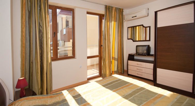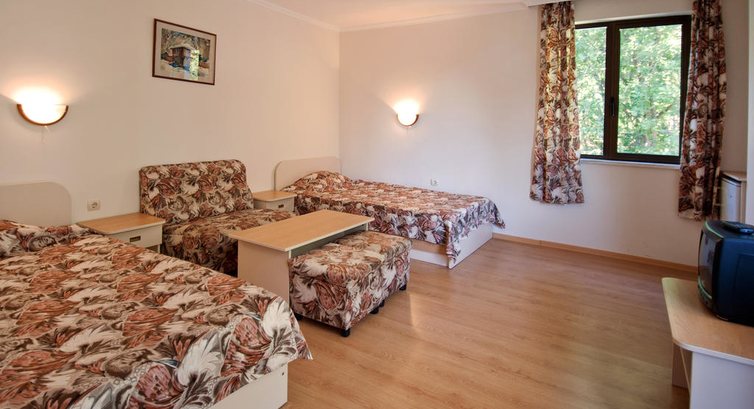 На вывеске в отеле стоит 4 звезды. Конечно, на 4-ку он не тянет, это твердая такая троечка. Поставила 4 за размещение, потому что в номере нет фена, а в описании отеля он был. Естественно, мы его не взяли. Это была ошибка, т.к. фен выдавался на ресепшн и был единственный на все номера!!! Еда была вкусная, разнообразная, кухня у болгар похожа на русскую. Например, были фаршированные перцы, очень вкусные супы, куриный, с фрикадельками, со свежей капустой и зеленым горошком. А вот обслуживание в ресторане - не очень, постоянно заканчивались приборы, горячая вода, несколько дней не было черного чая... В общем, отель для не привередливых туристов. Зато плюс отеля - рядом Северный пляж с нормальным спуском. А Южный пляж, который находится на другом конце города, оборудован длинной лестницей, по которой в жару нужно подниматься с пляжа наверх.