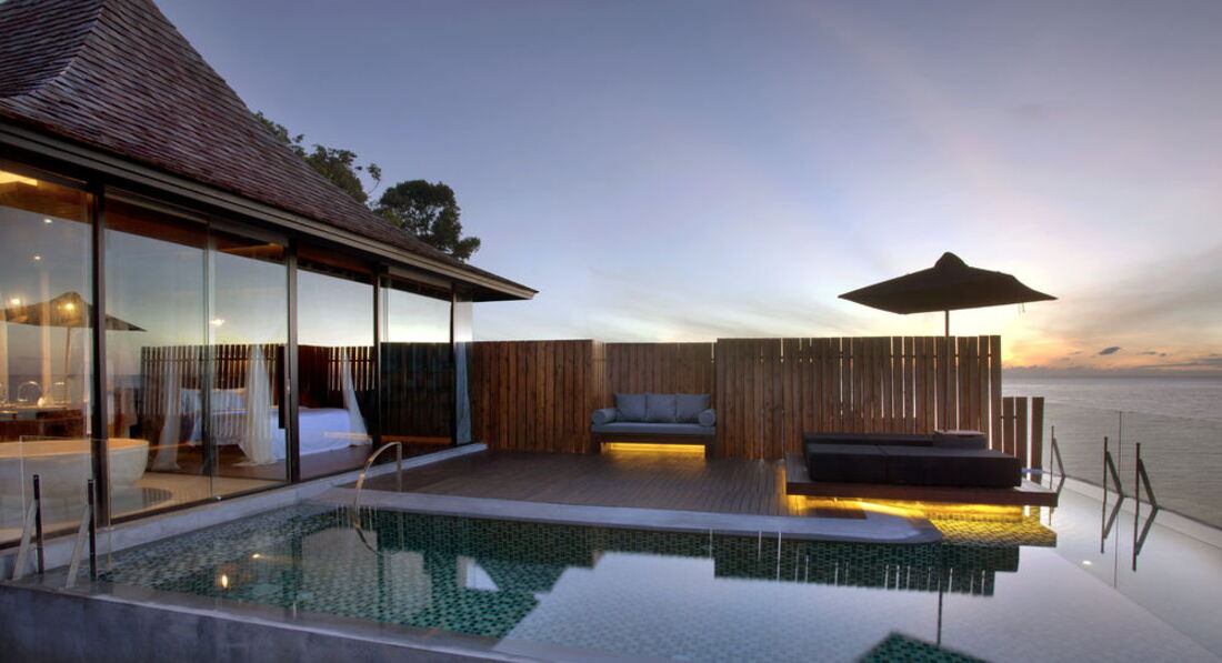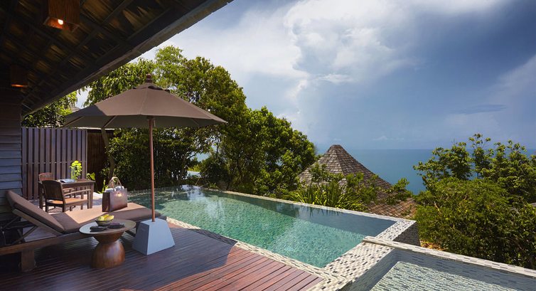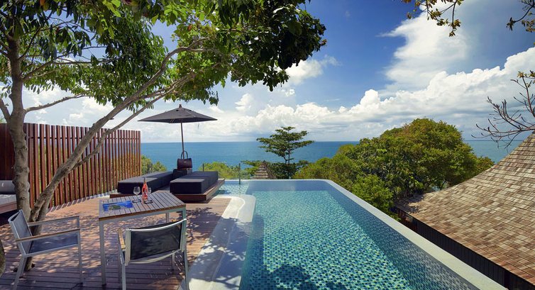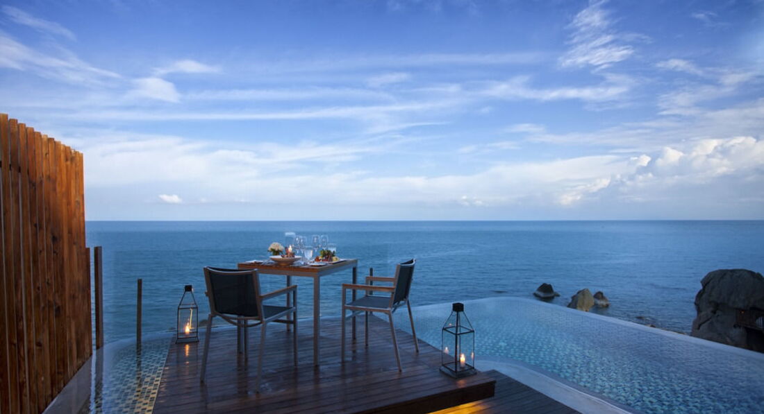 5 Panoramic Ocean View Pool Villa (панорамний вид на море, басейн з «Aqua Jet Massage Bed», душ на відкритому повітрі, тераса з лежаками та обіднім столом, вбиральня, макс. 2+1 чол., заг. пл. ділянки вілли 140 м2);