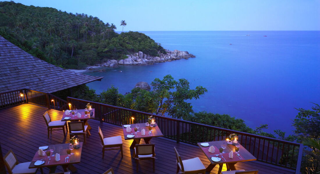отдыхали в данном отеле с 10.01.2011 по 24.01.2011г.в целом отель просто великолепный,экзотический,расположен на мысе острова.обслуживание на 5+,улыбчивый и вежливый персонал,впрочем все тайцы производят такое впечатление!!!номера в отеле очень красивые,большие комнаты,большая,просто огромная кровать,в номерах убираются 2 раза в день,а на ночь на кровати оставляют какую-нибудь вкусняшку с цветами и пожеланиями спокойной ночи,очень приятно.завтраки в отели поначалу нас неприятно удивили,более скудного завтрака мы нигде не видели((но и к этому быстро привыкаешь,благодаря красоте отеля.я рекомендую именно этот отель,для отдыха БЕЗ детей.отель совсем не рачитан на прием детей,боссейн там глубокий и холодный,до моря спускаться по лестницам достаточно долго,а сам отель на крутом склоне,стоит оступиться и ребенок кубарем покатиться вниз((но для тех кто собирается отдыхать без детей,еще лучше ПАРОЙ))отель самый лучший,езжайте не пожалеете.насчет погоды,в это время очень комфортная,нет изнуряющей жары,тем ок.30 гр.были и дожди,но они даже не мешали отдыху.