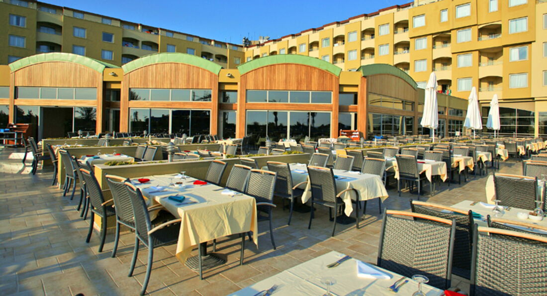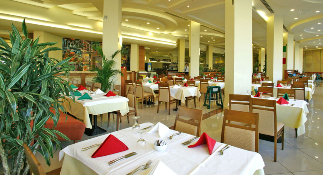 Бари та ресторани: головний ресторан розрахований на 1500 осіб (критий, з кондиціонером, літня тераса, дитяче меню, дієтичне меню, дитячі стільці), бар на пляжі (09:30-18:00), бар біля басейну (09:30- 24:00), лобі-бар (24 години), диско-бар (23:00-03:00), Meeting-бар (09:30-24:00), боулінг-бар (10:00-24:00) ), Cafe-Turk (08:30-00:00), Luna Bar (09:30-24:00), Thalosso Bar (08:30-19:00), Beer garden (15:00-24:00) . 5 ресторанів A la Сarte: рибний, далекосхідний, італійський, мексиканський, гриль – безкоштовно 1 раз за час проживання, за попередньою резервацією