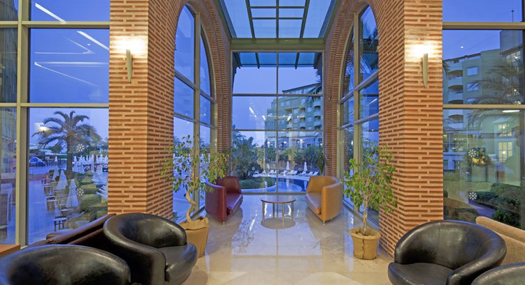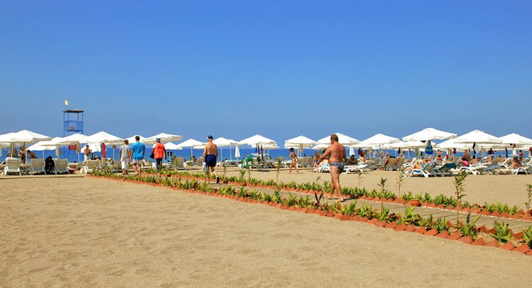 Кто поедет не пожалеет 100% территория большая. номера большие. Кормят на 6 из 5. Черешню давали с кулак. Мясо рыба креветки всякие. Пиво бутылочное несколько сортов. Внизу в баре алкоголь из дьюти фри. Пей сколько влезет. Понравился сок с мякотью абрикосовый. Не бодяжный! Был в Турции не первый раз, но круче этого отеля не встречал. Браслеты не выдавали вообще. После него понял что пять звезд в Турции разные бывают. Пляж отличный. Если не хочешь с берега заходить в воду есть пирс. Посещали отель в 13 году. Может что и изменилось. Хотя судя по цене проживания не думаю.