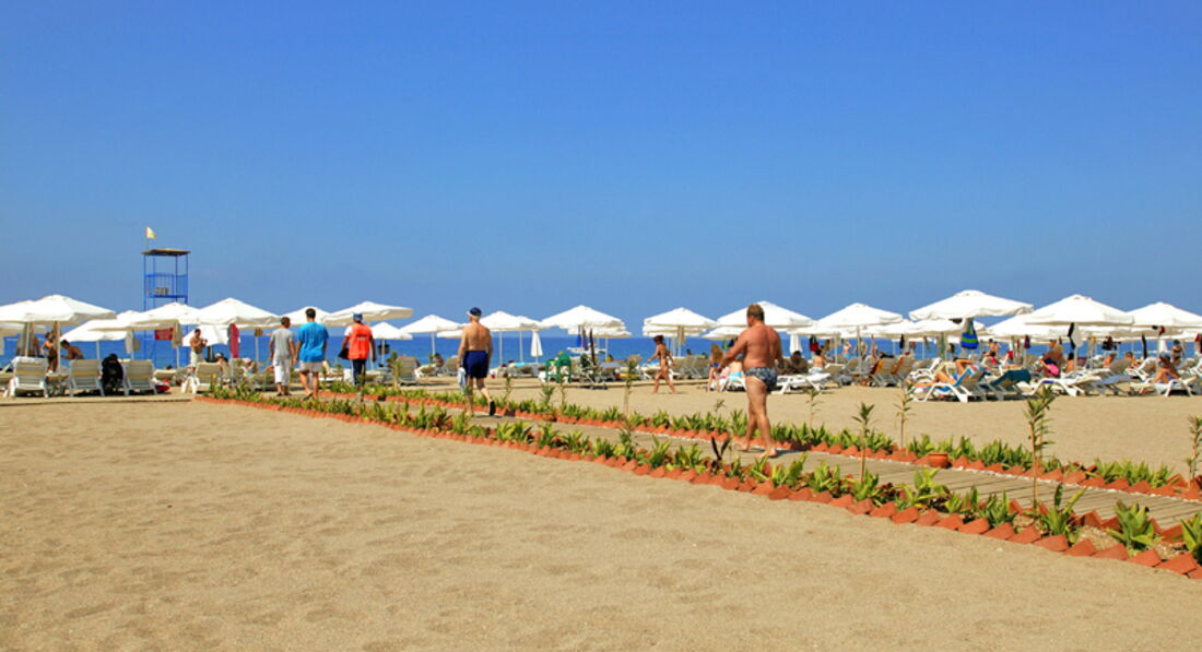 МОРЕ. Полотенца пляжные возле главного бассейна, возле pull-бара. Не пройдите. Возвращаться далековато))) Идете на пляж через маленькую речку с утками, по мостику. Можно увидеть кроликов на территории и много кошек. Нам хватало одного лежака. Проблем ни разу не возникло. Самое прекрасное на пляже для детей - детская площадка с навесом. Очень большой плюсик. Горки небольшие, за ребенка были совершенно спокойны. Наш ребенок очень любил там играть, мы могли пока позагарать. На пляже бар. Напитки наливают в маленькие пластиковые стаканчики. Люди сразу берут по четыре, по шесть. Один раз наблюдали такую картину. Отец с сыном возле бара. Отец "Мне шестнадцать стаканов пива". Бармен покачал головой, но стал наливать. "Уж очень маленькие они у вас". Пока наливал сын бегал носил стаканы до места их лежака. Море теплое с волнами. Это прикольно на волнах поплавать. Ребенку купили круг. Очень нравилось ему море. Заход отвратительный, все как описывают. Но не так страшно, привыкаешь. Можно плавать и с пирса. Но мы заходили с берега, ни разу ноги не разбили. Заходили с ребенком 2,5 года все нормально. Пляж кто-то пишет грязный. Ну уж простите, не мусорите чтоб грязи не было, через каждые пять шагов стоят мусорки, ходят уборщики. И все равно умники попили пивка и стаканчики под лежаками оставили. В баре пробовали вкусные знаменитые турецкие лепешки. В общем море все 5 баллов, не смотря на заход.