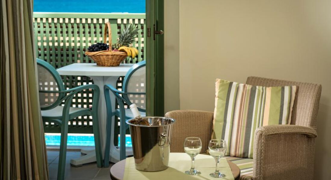 suite one bedroom (вид на море або сад, повністю відремонтовані номери, осн. ліжко – 2 односпальні, дод. – софа, макс. 3 чол., 29 м2).