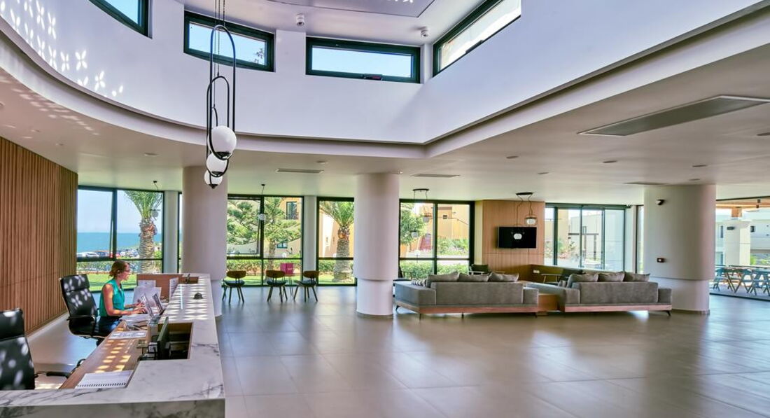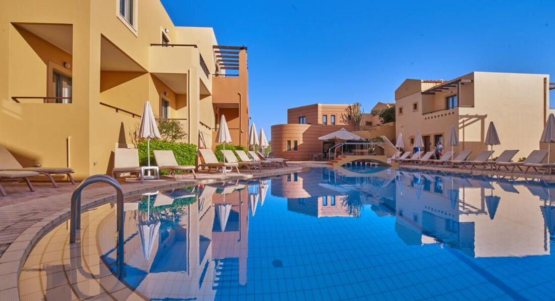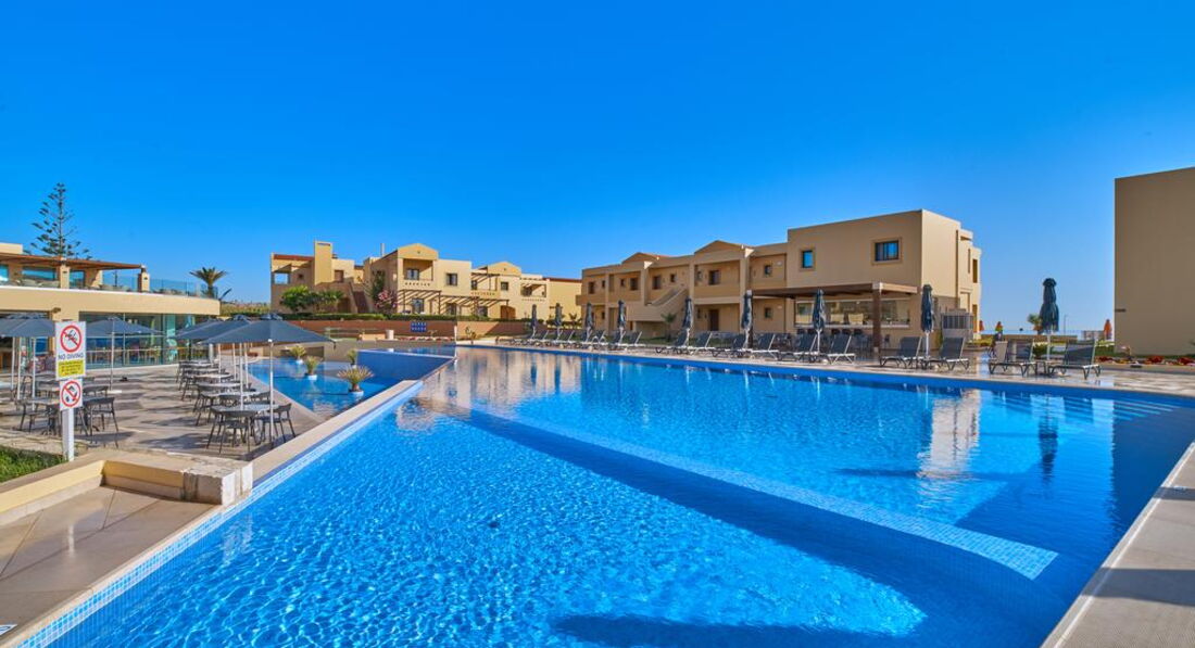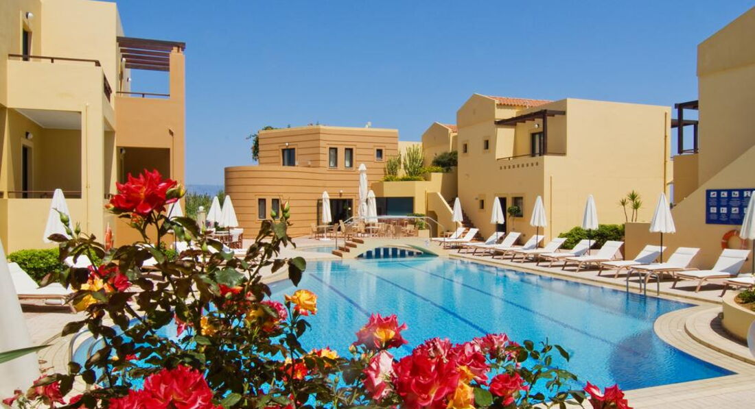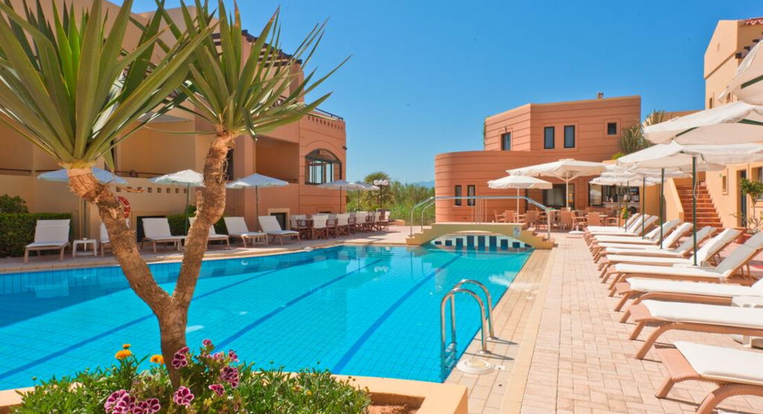 Готель розташований безпосередньо на пляжі Герані. На доглянутій зеленій території є басейн, тренажерний зал, дитячий майданчик, обладнаний власний пляж. До послуг гостей просторі номери з вітальнями, зручності для занять спортом та смачні страви критської кухні. Готель підходить спокійному сімейному та молодіжному відпочинку.
