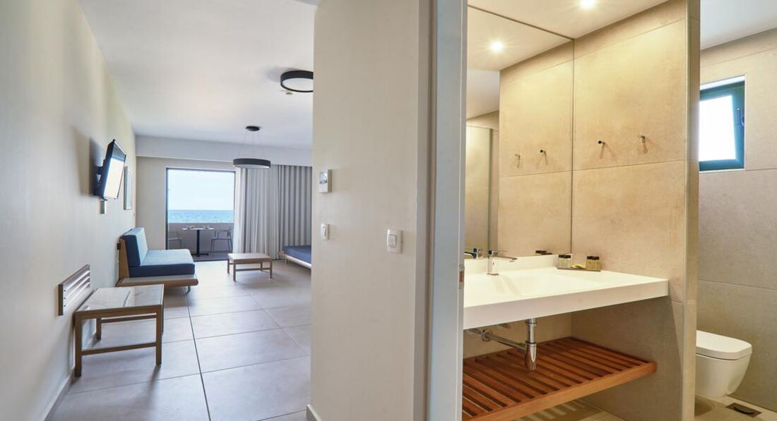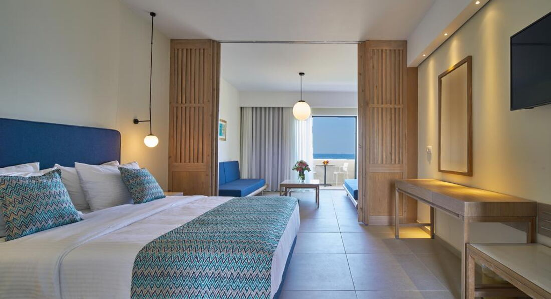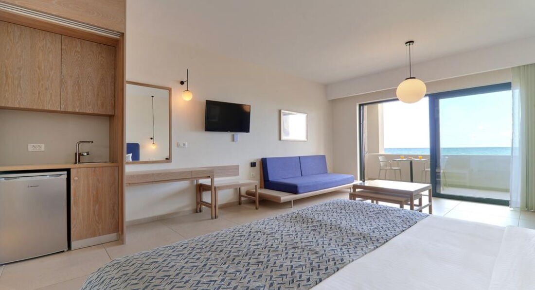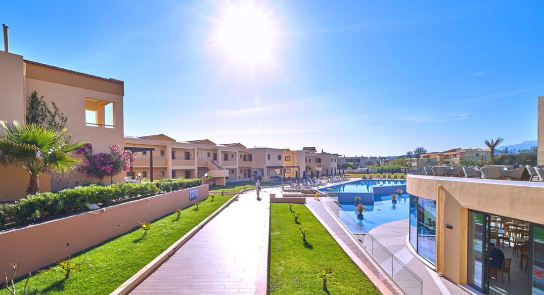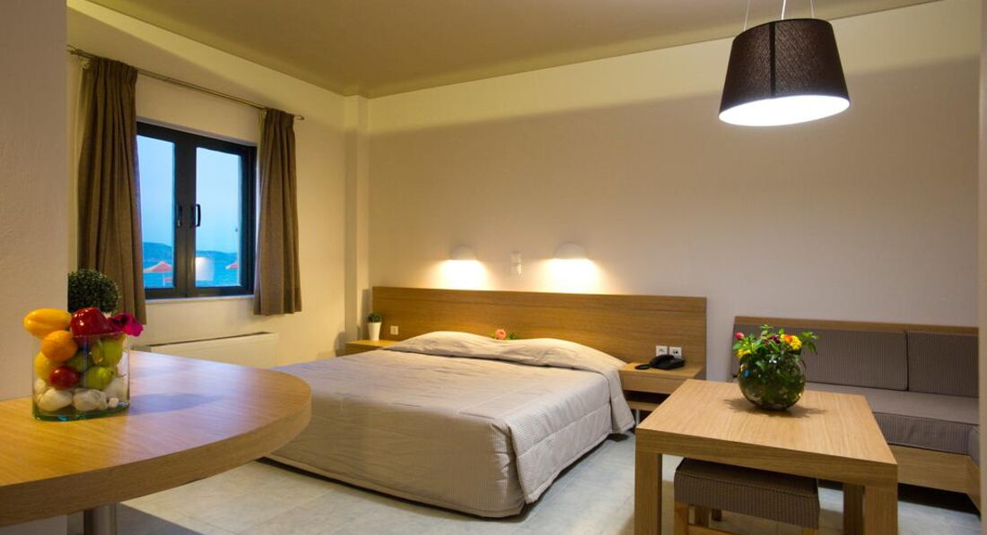 Готель розташований безпосередньо на пляжі Герані. На доглянутій зеленій території є басейн, тренажерний зал, дитячий майданчик, обладнаний власний пляж. До послуг гостей просторі номери з вітальнями, зручності для занять спортом та смачні страви критської кухні. Готель підходить спокійному сімейному та молодіжному відпочинку.