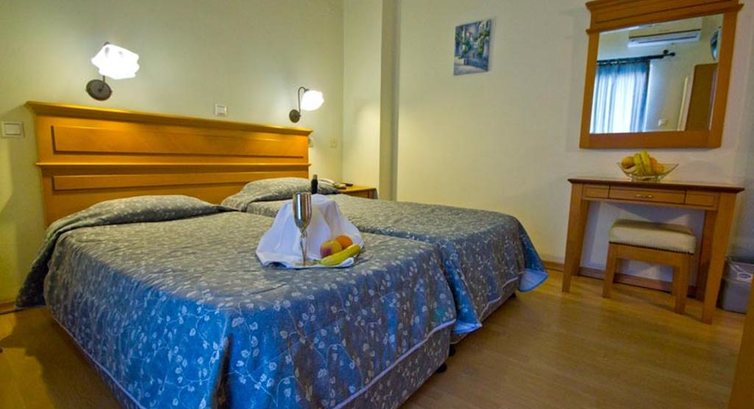 Територія та послуги: • основний ресторан (грецька кухня, 10:00-22:00) • лобі-бар • буфет-зона (сніданок «шведський стіл») • wi-fi на території • автопарковка • ресепшн 24 год. • камера зберігання • екскурсійне бюро • пральня Розваги та спорт: • ТВ-хол • прокат велосипедів (платно) Для дітей: • ліжечко в номері (за запитом) • стільці в ресторані (за запитом) • послуги няні (за запитом, платно) Живлення: • BB – сніданок. Пляж: Громадський гальково-піщаний пляж за 200 м від готелю. Парасольки, шезлонги – платно. Пляжні рушники не надаються. До оплати приймаються кредитні картки: Visa, MasterCard.