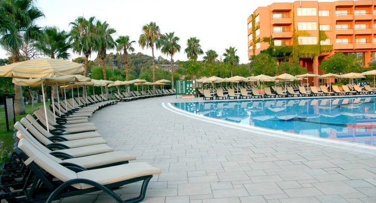 Отдыхали две недели в этом отеле с 6 по 20 июня.Приехали в 11, номер дали в 13-30 несмотря на то, что с нами был ребенок до двух лет,но и для этого пришлось полчаса стоять возле стойки и смотреть в глаза.Номер неплохой, просторный, с видом на гору и какое-то здание.Ребенку принесли манеж в 17 00.Постельное белье как новое , чистое и белоснежное,меняли каждый день нам и ребенку,за исключением тех дней,когда мы вешали табличку не беспокоить,потому что ребенок после обеда спал.Горничная убирает в разное время день до обеда,на следующий день после,чередует левое и правое крыло этажа.Интернет у нас в номере ловил даже лучше,чем на ресепшен и у бассейна.Питание за две недели менялось .Так что среднюю оценку ставлю четыре.В первые дни из фруктов были только яблоки и апельсины,иногда грей,потом добавилась дыня,но она безвкусная и появились такие же бананы.Мяса было много и говядина,и курица в разных видах ,индейка ,рыбьи головы и хвосты.Даже на обед выбор был достойный.Дня через четыре мясо пропало.Совсем.Только малюсенькие кусочки курицы с хрящами и жилами и то если успеешь взять.Самое интересное началось с 12 июня,когда в отель заселились турецкие дети-спортсмены, человек 150-200,а может и больше.Выстроилась очередь на обед за едой, которой нет, мест нет, сесть некуда, шум, гам.Дети носятся ,толкаюся в очереди, лифт открывается - выйти не дают, сразу влетают. Врезались в ребенка, хотя я водила его за руку.Возникло желание сменить отель.Возле ресепшен наблюдала возмущенных людей,писавших притензии.А вечером начался пир горой, в честь их приезда я так понимаю.Заработал гриль, шаурма,шашлыки,мясо всех видов,едой было все завалено просто.Лепешки с начинками,сливы ,нектарины,мороженое до этого было днем возле бассейна, теперь давали и на ужин.Появился арбуз наконец-то,его хватали как и мясо.Ужин на пять баллов, но хотелось бы спросить ,а если бы не приехали турецкие дети ?Остальные туристы не достойны нормального питания за свои деньги?Анимация вечерняя была подстроена под них же, спортивные конкурсы с шумными турецкими болельщиками на трибунах, мы больше и не ходили.Вообще анимация очень слабая в отеле,даже не хочется вспоминать и писать подробно.Детские танцы -это 5 песен одних и тех же каждый день и непонятно где, день в амфитеатре, день на малюсеньком пяточке возле бара,где тесно и все курят.Как там можно танцевать детям?Детей в отеле очень много,особенно малышей,если бы я сама не отдыхала с ребенком,то мне было бы там некомфортно.Отель детско-семейный.Мини-клуб-это одно название,маленький домик грязный как хлев,там загончик с шариками и стол для рисования.Рядом площадка детская ,утром поливают вся мокрая и грязная,днем не покатаешься ,горячо,вечером много детей.Мы ходили гулять на виллы ,там безлюдно,тихо и спокойно, ребенок бегал с удовольствием.Там тоже есть детская площадка,а неподалеку от нее еще одна ,но из виллы выскочила какая- то мадам и начала кричать,что это частная территория и пользоваться площадкой нельзя.Они выкупили эти виллы и сделали для себя площадку.Возникает вопрос к администрации , почему тогда не обнесли забором и не повесили табличу,что это частная собственность?Пляж реально плохой,если первую неделю было более менее,то к концу был большой наплыв отдыхающих,тесно,особенно когда начинают двигать шезлонги не пройти вообще.В баре на пля