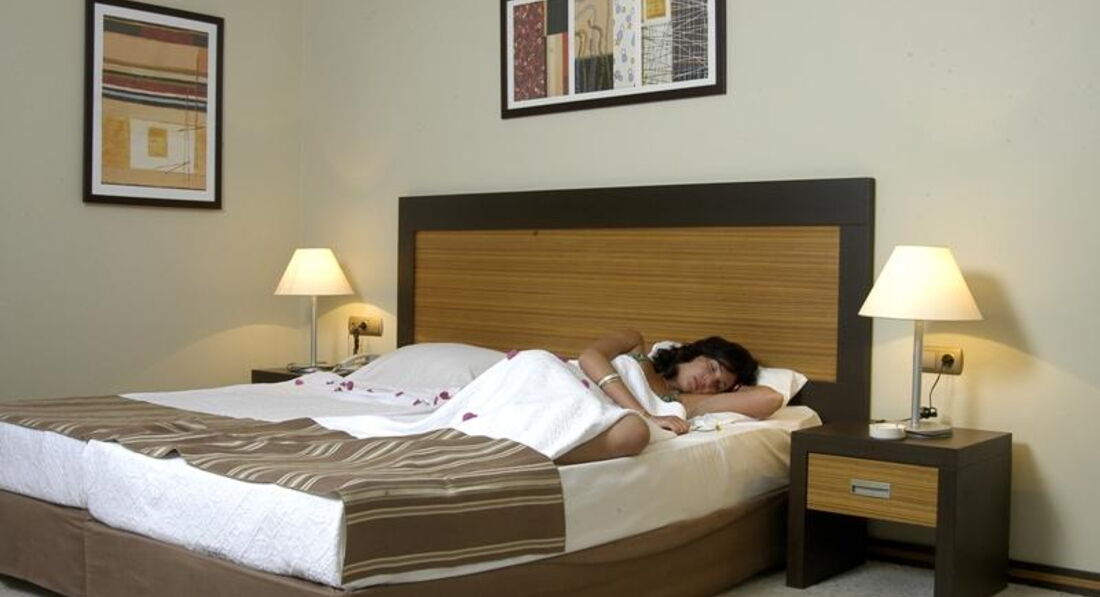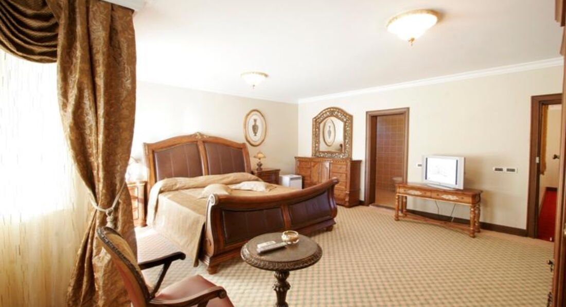 Номер без изысков, две раздельные кровати мы сдвинули, кровати обычные, матрасы тоже, постельное белье не новое, но чистое. Удивило отсутствие: халатов, зубных наборов, одеял. По моей просьбе принесли - но не одеяла, а пледы - мне они показались не очень свежими, под ними не спала. А про халаты и прочее пояснили что они не входят в концепцию 5* отеля).