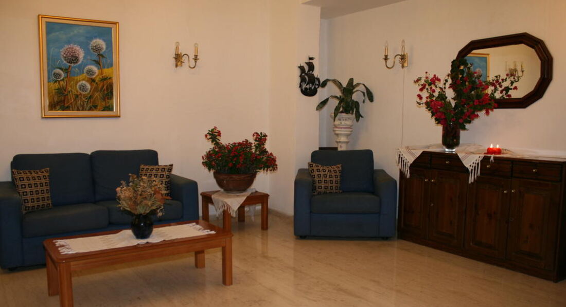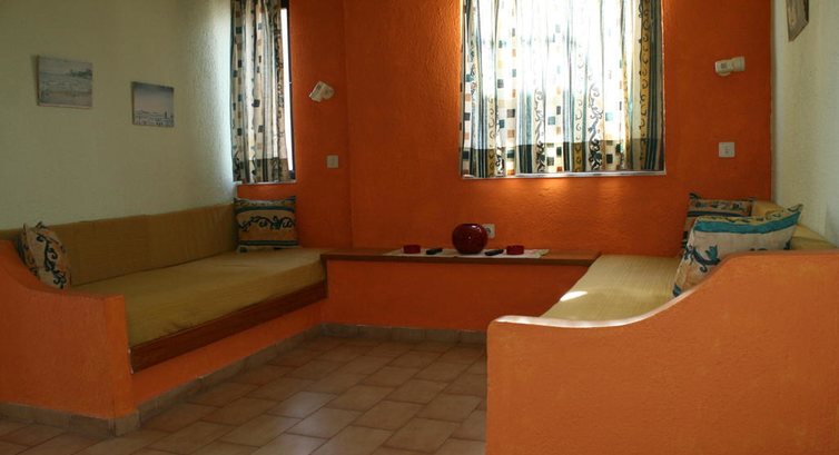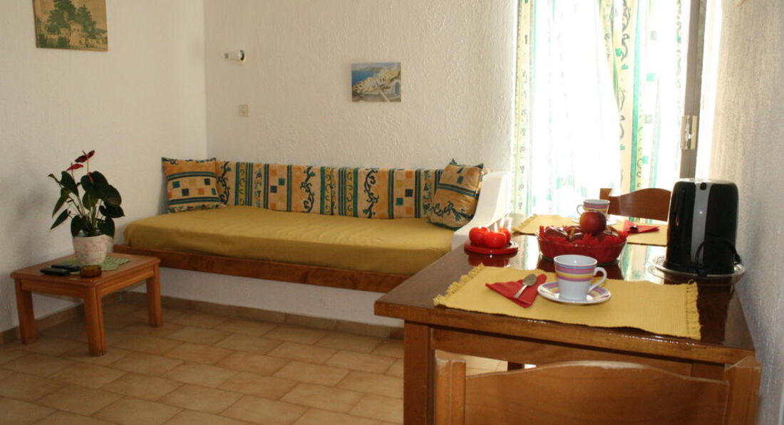 Типи номерів: • 20 Friday Build (13 м2, вид на сад, макс. розм. 2 чол., Одна спальня та ванна, балкон у всіх номерах). • 5 Sogiorca Std (20 м2, вид на сад, макс. розм. 3 чол., спальня та ванна, обладнаний кухонний куточок, балкон у всіх номерах). • 8 Sogiorca Apts (вид на сад, макс. розм. 4 чол., 2 кімнати: спальня та вітальня, ванна кімната, обладнаний кухонний куточок, балкон у всіх номерах). • 4 Bluebay Std. (Макс. Розм. 3 чол., Одна спальня та ванна, обладнаний кухонний куточок, балкон у всіх номерах). 8 Bluebay Apts. (Макс. Розм. 4 чол., 2 кімнати: спальня, вітальня, ванна, обладнаний кухонний куточок, балкон у всіх номерах).У номері: • туалетне приладдя • фен • індивідуальний кондиціонер (5 євро на день) • електрочайник • кухонне приладдя • міні холодильник • сейф (платно)