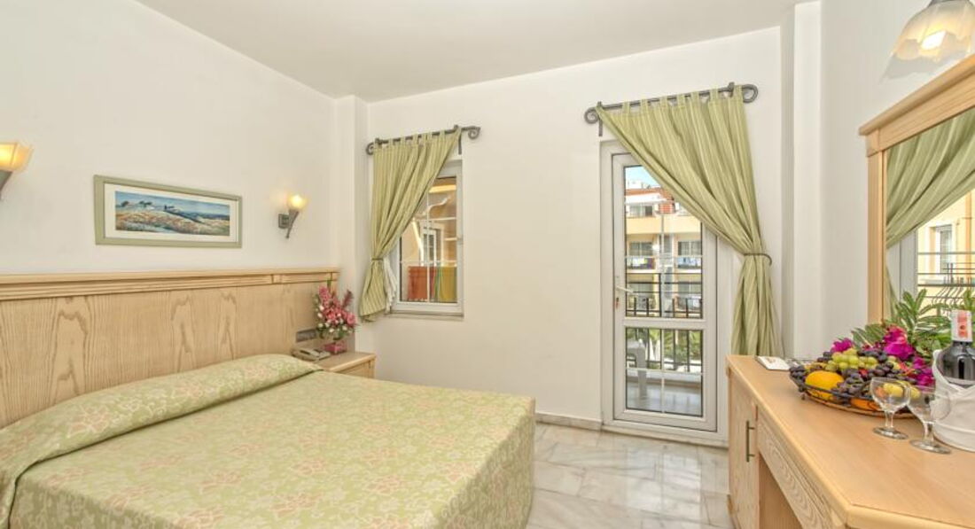 Несмотря на совсем небольшой размер номера "стандарт",дискомфорта мы с женой не чувствовали,в номере было чисто и опрятно.Сначала нам предложили номер с окнами на бассейн,но я попросил номер с видом на горы,о чём впоследствии пару раз пожалел,потому что под окнами проходит дорога,по которой часов с шести утра начинается движение транспорта,и хоть оно и очень нечастое,но людям с беспокойным сном,оно будет мешать поспать подольше.Но вид с балкона стоил того,чтобы остановиться именно в таком номере.Ещё пару раз за время отдыха в каком-то ресторанчике напротив наших окон пели турецкое караоке на безумной громкости,но это быстро кем-то пресекалось.В целом номером очень доволен,уборка КАЖДЫЙ день,смена полотенец КАЖДЫЙ день,всё это без напоминаний и чаевых.В номере из туалетных принадлежностей был шампунь в микробутылочках и шапочка для душа,жидкое мыло в дозаторе,больше ничего, мы брали с собой всё остальное.За номер ставлю 5- из-за того,что пару дней не высыпался в силу вышеперечисленного. Но это не вина отеля,просто тут нужно выбирать либо вид,либо тишину.