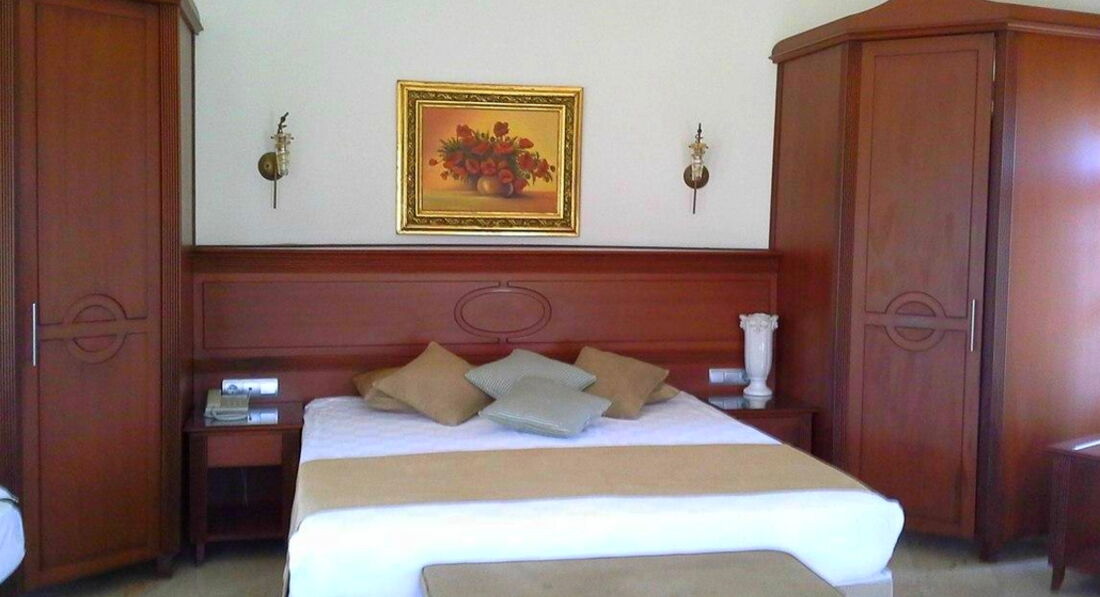 А теперь о плюсах. Заселили меня в течение 5 минут. Хотя я очень боялась овербукинга (опять-таки начитавшись отзывов ).Жила я на втором этаже, в 202 номере с прекрасным видом на горы.Номер убирали каждый день. Постельное белье, полотенца тоже меняли ежедневно. И никаких намеков на чаевые.Женщины-костелянши всегда улыбчивы и приветливы. Вообще все отеле работают замечательно. Особенно запомнились: Сулеман, Адэм, Осман, Исмаил, Ахмед , официанты в ресторане, повара.Спасибо вам, ребята, за вашу отзывчивость и желание, чтобы все гости отеля хорошо отдохнули.К сожалению, не знаю, как зовут самого хозяина отеля. Ему тоже хочется выразить свою благодарность.Кстати, он и вся его семья часто обедали и ужинали в ресторане. И наравне со всеми туристами, без выпендрежа и заносчивости, стояли в очереди за едой. Это я все о жалобах "крутых" отдыхающих, которых "унижало" стояние в очереди за пищей.Кормят здесь хорошо. Вся еда приготовлена качественно, все свежее, и голодным здесь остаться просто нереально. Опять-таки ни разу не видела отощавщивших от голода, скорей наоборот...И еще. Отдельная просьба к некоторым нашим соотечественницам: ну нельзя ходить в ресторан в мокрых купальниках, даже если на вас надето парео. Ну и туристы из "тагила"....Из-за вас многим отдыхающим было очень неловко и стыдно, когда вас заносили уже с автобуса еле живыми от алкоголя, или когда вы напивались до такого состояния( ели раков у бассейна и ополаскивали в нем же руки ) , что приходилось вызывать полицию.