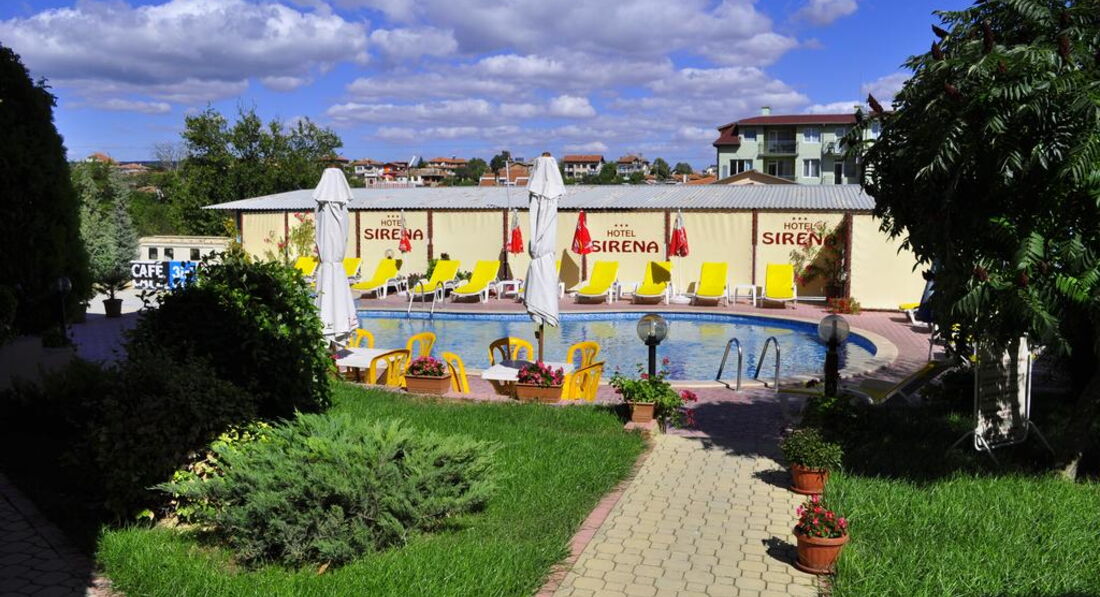 Здравствуйте, с удовольствием пишу отзыв об отеле Сирена в Кранево. Это очень приятный, чистый, уютный, благоухающий отельчик, вдалеке от шума лагерей, ресторанов и т.п. Мы-в составе моей мамы, меня и моего трехлетнего сына получили огромное удовольствие отдыхая там, при том что наш отдых продолжался целых 50 дней. Завтраки были достаточно разнообразны, обязательно макаронные изделия, какие-нибудь яичные дела, мюсли и сухие завтраки, нарезки колбас, сыров, паштет, джем,мед и т.д., плюс какие нибудь печеные булочки, ну и фруктики сезонные. Но, к сожалению нет каш, имейте это ввиду если собираетесь с малышом. Мы обходились горячим молоком с шоколадными шариками. В номере холодильник, кондиционер, просторный балкон. Убираются часто и добросовестно, меняют постель и полотенца каждые 2 дня. Персонал и руководство очень доброжелательно, приветливо, очень хорошее отношение к детям. Бассейн расположен во дворе отеля, скрыт от посторонних глаз. Имеется лягушатник, мой ребенок поплыл благодаря этому бассейну, так как торчал там и после моря и после сна и после ужина и обеда=) До моря идти далековато, есть дорога по улице с ресторанами и магазинчиками, но это для крепких нервами, так как лагерные детишки пытаются все свои карманные деньги спустить в первые дни пребывания и толпами примеряют парики и едят пиццу прямо на пути жаждущих окунуться в морсую волну. Поэтому есть еще один путь по задворкам отелей, вдоль трав и плодовых деревьев, мы были с коляской и это значительно облегчило наши походы на море. Идти не очень долго и не утомительно. Вобщем все хорошо, вам понравится. Что касается обедов и ужинов-можно обедать в отеле, а можно и ходить в другие-все близко. Хотя Кранево удивило невкусной едой, мы ожидали от Болгарии разнообразия овощей, а получили турецкие овощи и фрукты в торговых палатках, картофельное пюре в ресторанах-завареное кипятком!! А спагетти вообще нигде брать нельзя, вам принесут такое варево необъяснимо как приготовленное.Во всех меню есть рыба и морепродукты, но вот опять же-мидии я попробовала во всех видах-они их варят так что уже не чувствуешь что ешь. Но вобщем и целом все хорошо и отпуск можно провести в Кранево, тем более что очень приятно невысокие цены.