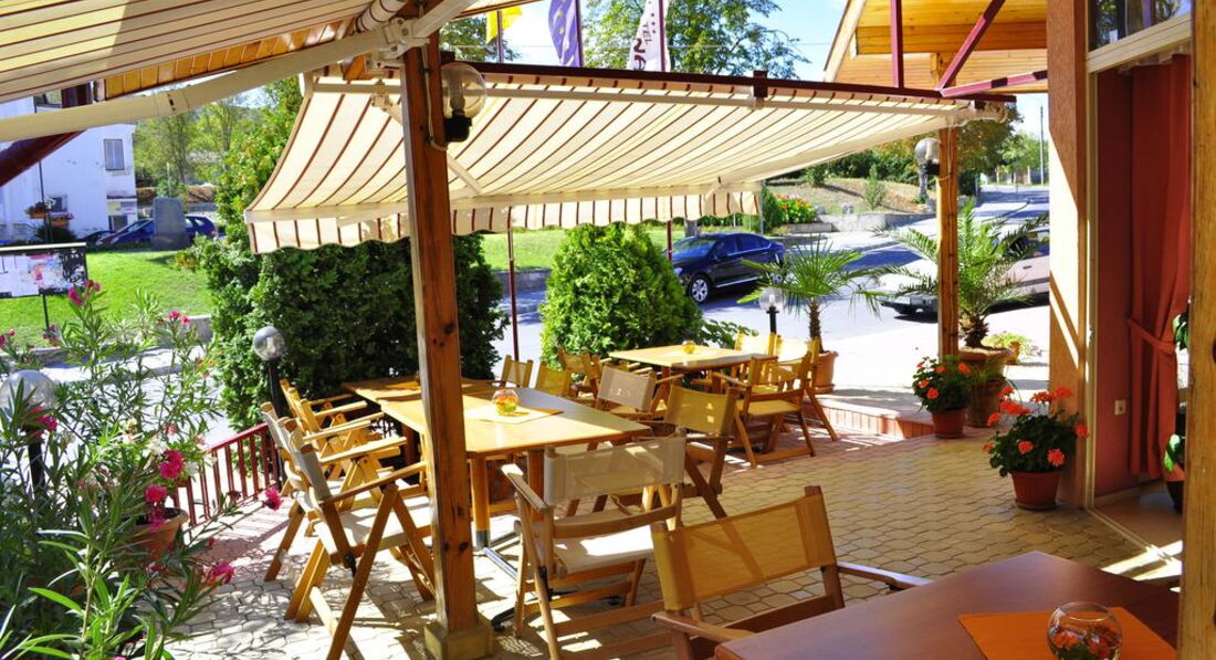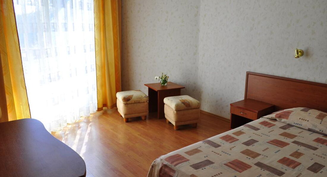 Остались с приятными впечатлениями после отдыха. Небольшой уютный отель. Находится в некотором удалении от центральной улицы - нет суеты и тише. Приятный вид из окна на сельский ландшафт. По утрам кричат петухи и много ласточек. Это только придает колорита. Запомнились тихие прохладные вечера на балконе. Там имеются два стула и столик. Так же сушилка. В номере излишеств нет, но все удобства - душевая кабина, горячая вода, кондиционер, холодильник и телевизор, конечно, есть. По телевизору два русскоязычных канала. Есть Wi-Fi. Но сигнал не очень сильный. Есть бассейн с джакузи. Есть возможность заказать напитки и коктейли в бассейн. Парковка. Было много отдыхающих с Украины. Конечно, последние события внесли свои нюансы. Но все было в рамках нормальных отношений. В бытовом общении проблем не было.