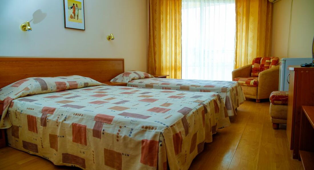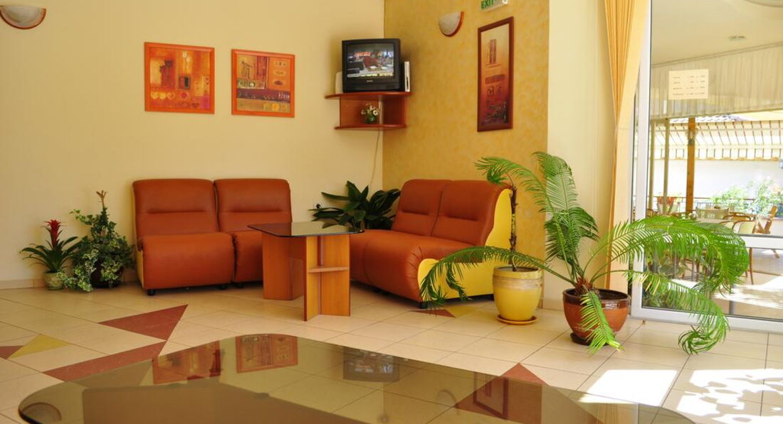 Отдыхали с 26 августа по 06 сентября 2013 года! Нам очень понравилась атмосфера в отеле- все очень доброжелательные, улыбаются,девушки на ресепшен поздороваются и пожелают всего хорошего пять раз на дню, очень чисто в отеле, убирались , мыли пляжный песок каждый день! Завтраки сытные и вкусные, макарошки, колбаски, гренки с брынзой очень вкусные, овощи, фрукты, колбаса и сыр трех видов, сухие завтраки, мед, джемы, паштет, яйца чередуются в виде глазуньи, омлета или вареных, кофе, молоко,чай, мы делали обычно кофе каппучино-обычное из автомата. Кстати на еду очень мало денег потратили, обычно только ужинали: в поселке в рыбном ресторанчике Централ или в своем отеле, где 20 процентов скидка- порции очень большие, салат один на двоих брали и второе, а еще спагетти огромные порции-600 гр. на троих хватит! Днем можно на пляже перекусить палачинками(блинчики) огромных размеров, или покупали банницу и пирожки в сладкарнице(кондитерская) Микки.