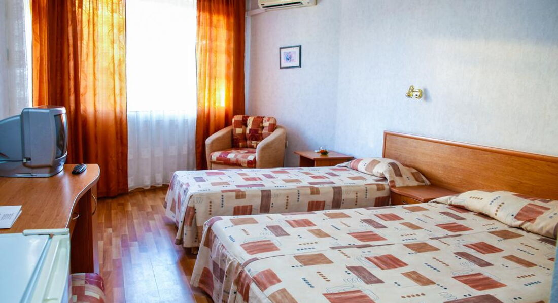 Отдыхали в Кранево в июле 2012. Небольшой отель находится на центральной улице, до пляжа примерно километр.