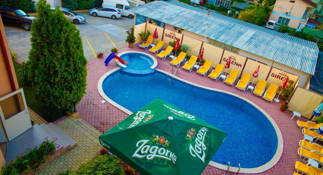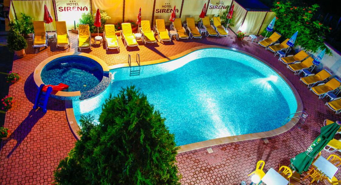 В Болгарии впервые...Дети ездили в лагерь Альбатрос, а нам - родителям было дано на выбор Кристал парк (завтрак, обед, ужин) или Сирена (завтраки). Выбрала Сирену, чтобы не привязываться к питанию...и правильно сделала... Отель находится далеко от моря. Но, это не проблема - ходить было не в тягость, наоборот при отсутствии тренажерных залов - это плюс. Отель маленький, русских не было. Бассейн небольшой, но приятный. Шезлонги бесплатные и свободные. Музыка не будила, только петухи...С заселением проблем не было. Завтраки хорошие, ресторан чистый. Ресторан предоставляет 20% скидку если у них обедают и ужинают те кто проживает в отеле...Приятно.. Обслуживающий персонал, официанты приветливые, никаких проблем не возникало. Управляющая - приятна женщина, всегда на месте. Номер убирали каждый день, белье и полотенца раз в три дня. Трансфер домой был в 18.20, в 12.00 надо было освободить номера. То есть 6 часов неизвестно где пребывать. Удивительно было, что управляющая предложили пробыть в номере до 16 часов, объяснив, что горничная работает до 17 часов, чтобы она успела убрать номер. И ЭТО БЕСПЛАТНО...Коллега в Кристалле заплатила 30 лев...