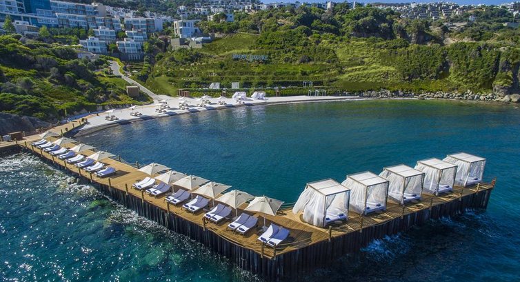 Готель JW Marriott Bodrum розташований на Егейському узбережжі, в Бодрумі, в тихому і затишному місці, на березі моря. Готель знаходиться поряд з пляжем у місті Ялікавак. Він стоїть на пагорбі в одній із найкрасивіших бухт півострова Бодрум. У готелі чудово поєднуються традиційна чарівність та сучасні зручності. Відкритий у 2015 році. Готель відмінно підійде людям, які хочуть відпочити далеко від міського шуму. Площа території 68 000 м²/