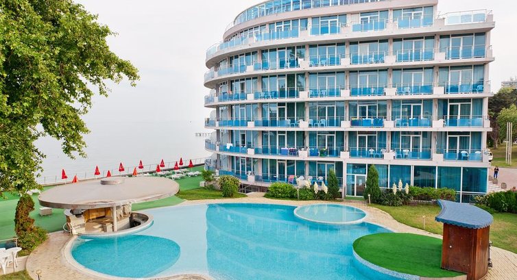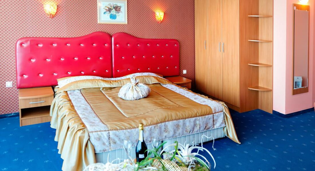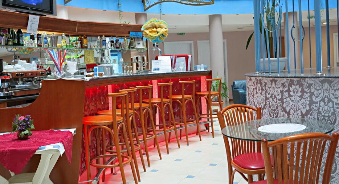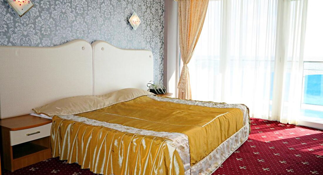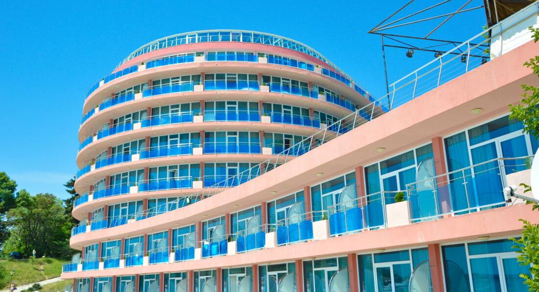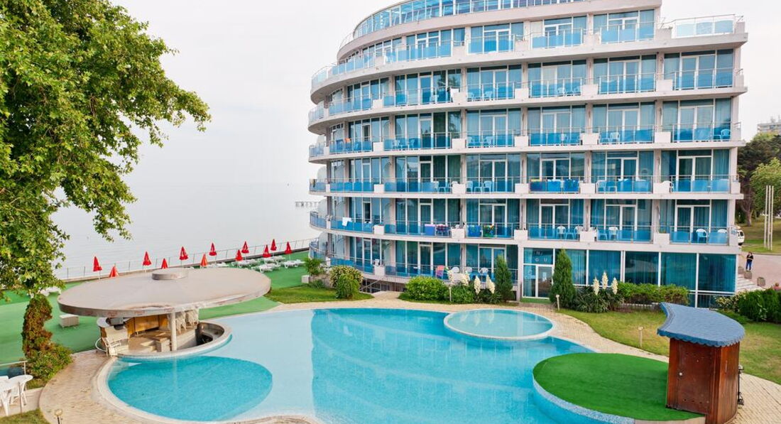 Прочитав отзывы в интернете, ожидали самого плохого, однако, действительность оказалась гораздо приятнее. В номер разместили сразу по приезде. Номер достаточно большой, светлый, с видом на море, хотя номер был оплачен эконом класса, т.е. должен был находиться где-то в подвале (может не повезти и вид будет на соседний отель). Отель небольшой, соответственно, ресторан (столовая) при отеле также не отличается большими размерами и разнообразием предлагаемых блюд. В меню, тем не менее, присутствовали различные закуски (сыры, колбасы), салаты, двух-трех видов, как с маслом, так и с майонезом; были супы двух видов и вторые блюда (картошка фри, мясо, курица, бигус, запеченная рыба - неплохая, кстати). На десерт предлагались болгарские сыры, пирожные двух видов (различались цветом крема), эклеры (очень редко), джемы, варенья и фрукты (клубника, черешня, апельсины, киви, яблоки и бананы). Киви было старое и жесткое, остальные фрукты хорошие. Мороженое не предлагалось ни разу (были в первой декаде июня). Относительно sky-бара, указанного в рекламе, выяснилось, что фактически он не работает. Бар на пляже находился в зачаточно-строительном состоянии, там возились рабочие (прогресс отсутствовал). В лобби-баре веселый бармен предлагал различные напитки и выпечку в определенные часы. Отель удачно размещен, посередине курорта. Что важно, возле него находится горячий минеральный источник, в котором можно бесплатно находиться. Развлечения соответствовали классности и размеру отеля, т.е. больших дискотек и шоу не было, но небольшие концертные программы (на полчаса) были каждый вечер, кроме понедельника (выходной день). Так были национальные танцы, эстрадные танцевальные номера и ориентальное шоу. Шоу с участием туристов не получилось, поскольку в начале июня таковых было немного, в основном, пожилые немцы и семейные пары с детьми. В целом, впечатление приятные но не столько от отеля, сколько от Болгарии в целом. Народ дружелюбный, говорят по-русски, охотно общаются. Цены, в-основном, невысокие. Отель можно порекомендовать любителям санаторного лечения и тихого отдыха. Тем, кто настроен на активный и веселый отдых, можно порекомендовать Гранд-отель или Азалию)