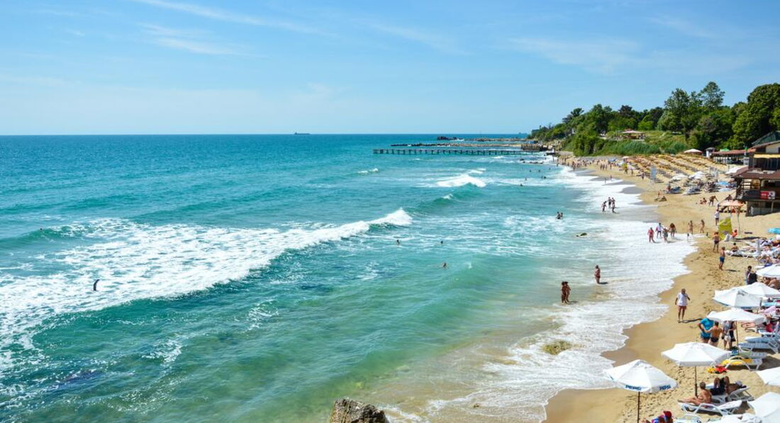 2. Пляж и море. Пляжа узкая полоска песка в пять метров в среднем. Заход в море – камни и скалы. Я лично подломил там большой палец на левой ноге. Вышел на работу прихрамывающим, да до сих пор болит. Говорят, что весь песок в море смыло, он был привозной. Ну тогда и надо писать в описаниях отеля – заход в море сквозь камни. По возможности мы ездили на прокатной машине в Албену. Там действительно рай для отдыхающих с детьми: площадки игровые и море с песочком с пологим входом.