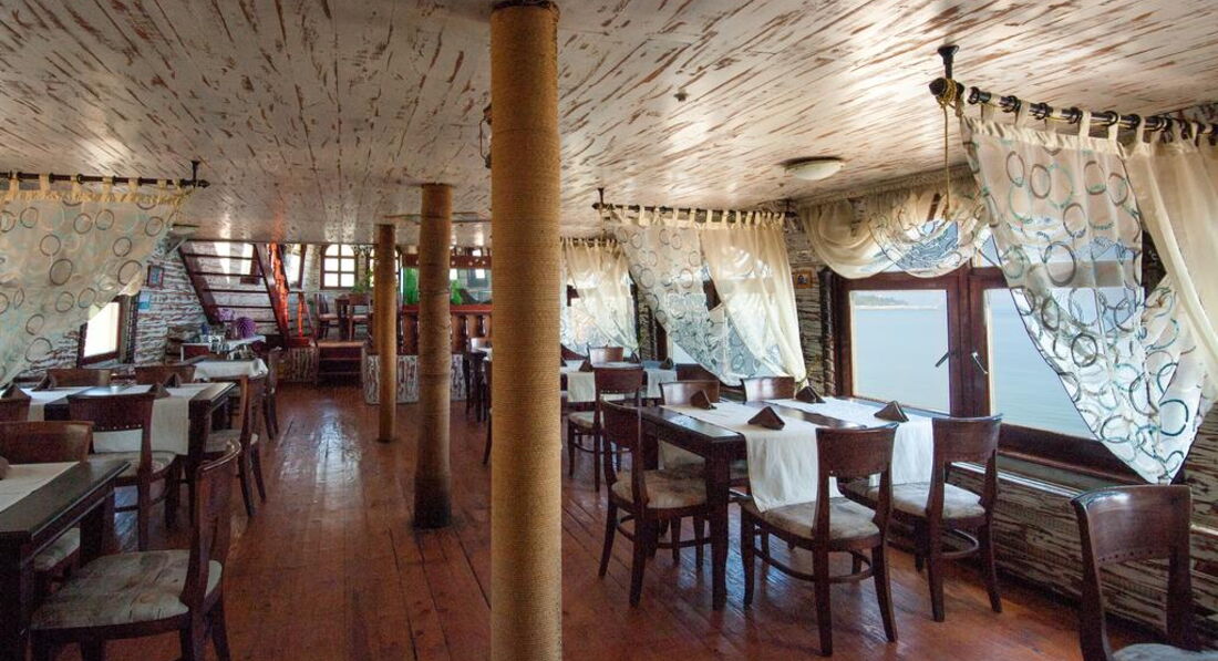 Питание удовлетворительное, без изысков и морских деликатессов. Напрягала очередь , отсутствие посуды и посадочных мест. Счастливы, что обошлось без кишечных расстройств. Услуги ресторана-корабля за отдельную плату. Но зная какие повора готовят, желание его посетить не возникло ни разу.