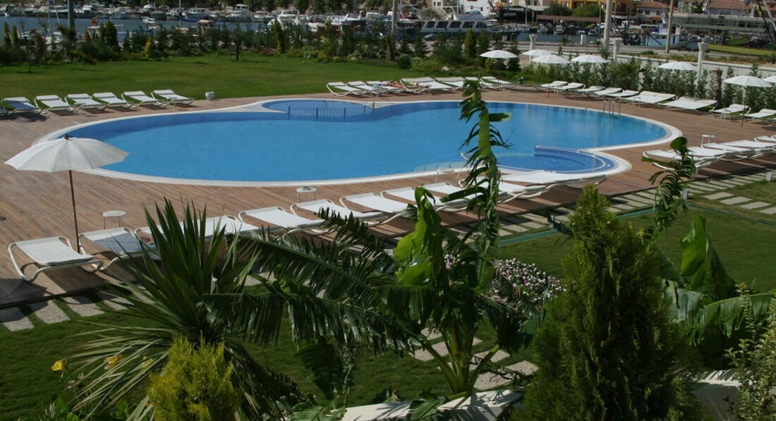 Територія та послуги: • перукарня • бари: 3 • конференц-зали: 2 (на 14–120 осіб) • ресторани: 1 • ресторани a la carte: 1 (міжнародний, за попереднім записом, платно) • пральня • басейни: 1 (відкритий) • біля басейну парасольки, шезлонги, матраци: безкоштовно • Wi-Fi у лобі та барах, безкоштовно • Інтернет-кафе безкоштовно • Кабінет лікаря Розваги та спорт: • Thalasso-центр • сауна платно • джакузі платно • масаж платно • тренажерний зал безкоштовно • турецька лазня (хаммам) безкоштовно • уроки підводного плавання платно Для дітей: • дитячий басейн Живлення: • HB • AI Пляж: власний пляж, є платформа (дерев'яна). Автобус до пляжу: безкоштовно (кожну годину). Бар на пляжі: платно; парасольки, шезлонги, матраци, рушники: безкоштовно.