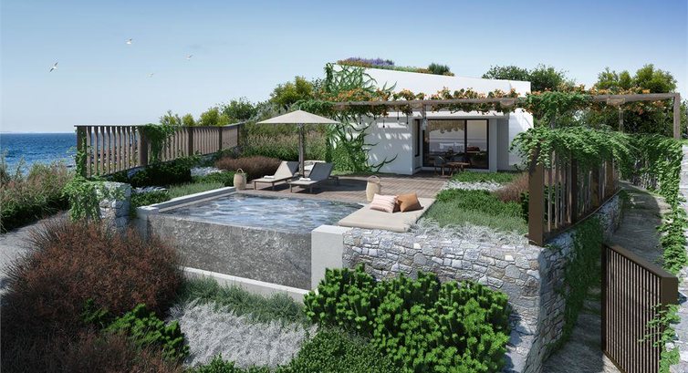 • Kaplankaya Suite with Pool (одне ліжко розміру king-size в окремій спальні, вітальня з диваном, кріслами, обіднім столом для 8 осіб, приватний басейн з 4 шезлонгами, приватний сад з лаунджем і кушеткою, обладнана кухня з окремим входом, макс. 3 чол., 240 м2)