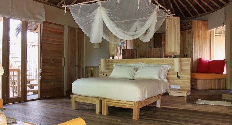20 Lagoon Water Villa (108 м², макс. 3 або 2+2 чол.). Водні вілли розташовані в лагуні, близько від берега. Ванна кімната зі скляною ванною кімнатою з видом на океан, приватний водний садок. Обідня тераса з прозорим столом, зона відпочинку на відкритому повітрі з шезлонгами, тахтою та надводним гамаком, обідня зона на верхній терасі та оглядовий майданчик з тахтою для відпочинку.