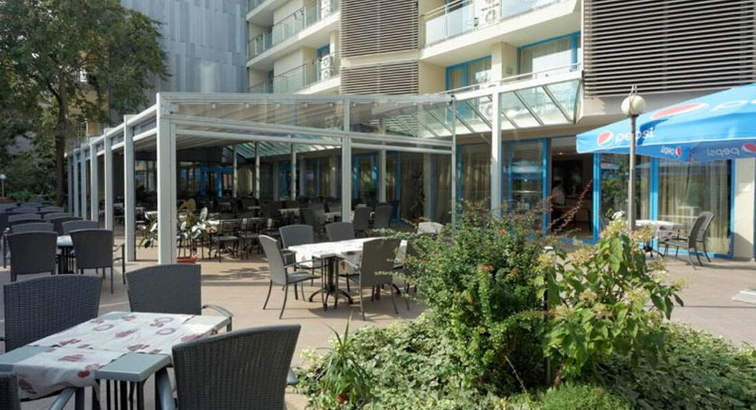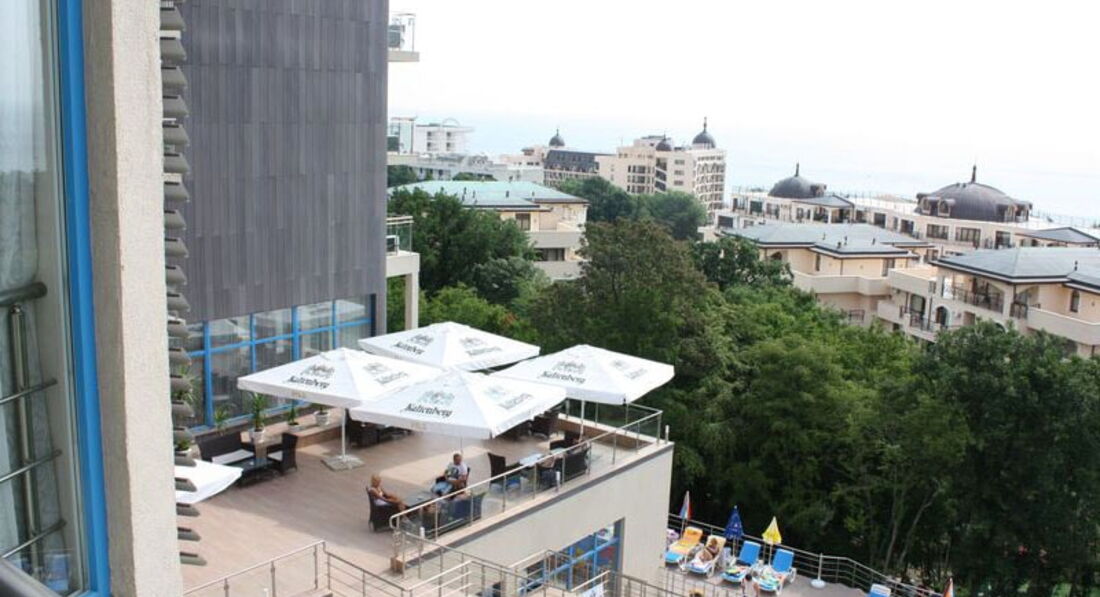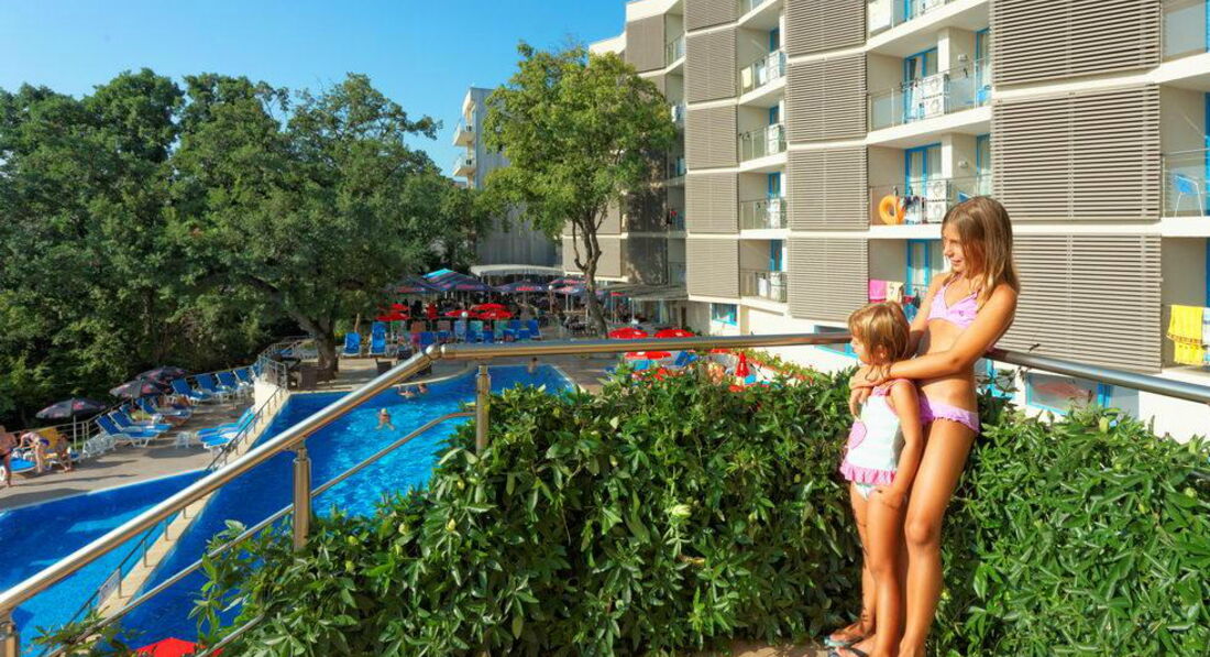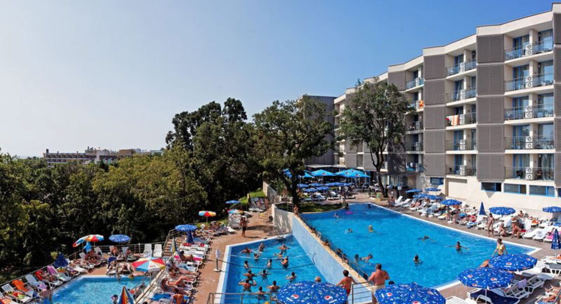 Отдыхали в данном отеле в июле 2015 с семьей (ребенок 11 лет). Остались довольны и отелем и самим курортом Золотые Пески. Вот то что нужно за умеренную плату, ничего лишнего, но все в норме и всего достаточно. Номер ни большой, ни маленький. Все работало исправно. Убирали "так себе", но это нас не омрачало. С номером повезло-вид был замечательный. Если окна закрыты, никаких шумов с улицы вечером не слышно. Питание опять же "как везде" -всегда найдешь что-то натуральное и голодный не останешься. Ассортимент не большой, но в отличие от многих отелей нет "вторичной переработки" - если это салат на ужин, то из свежих овощей, а не из тех, что в обед не доели и так со всеми блюдами. Очень вкусно. Ассортимент фруктов приличный. Не всегда они конечно спелые и вкусные, но выбор есть. Территории отеля, как таковой нет: 3 басика, площадка для спортивных игр и подиум с местами для анимации. До моря не далеко. Минут 5 не напрягаясь. Единственное кому бы не рекомендовала данный отель-семьям с маленькими детьми, т.к. весь отель располагается на горочке: и вот куда бы ты ни пошел это ступеньки, ступеньки, ступеньки... Туристы в отеле из разных стран: и россияне, и немцы и англичане и т.д. Минус конечно - это соседи румыны, а в конце июля их приехало очень много. Они ездят большими семьями по 6 - 8 человек и это сразу ощущается и в ресторане, и в басиках. В общем их присутствие ощутимо везде и не с лучшей стороны.
