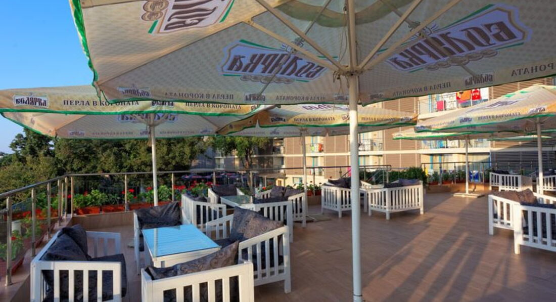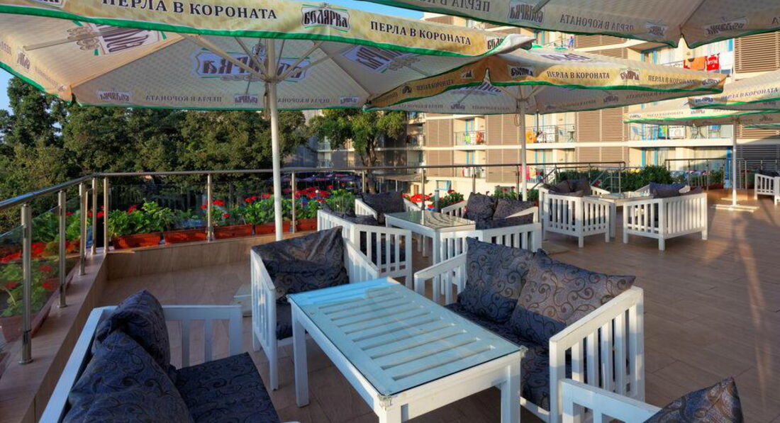 В целом отель неплохой. Питание хорошее.Есть съедобные супы, салаты, большой выбор гарниров и мясных блюд, фруктов и напитков. Сам отель небольшой. Вечером есть анимация и детская дискотека (все проводят аниматоры). Переносили вылет и продлевали номер. Стоило это 50 лев до 17-00. На мой взгляд, совершенно не подходит для отдыха семьи с маленьким ребенком. Дело в том, что отель находится как бы на горе и до бассейна и особенно до пляжа приходилось преодолевать большое количество ступенек! Сами ступени достаточно высокие, поэтому мою 4-х летнюю дочку периодически приходилось носить на руках. А вообще, расположен отель в самом центре курорта. Все развлечения в пешей доступности. Это, на мой взгляд, самый главный плюс данного отеля.