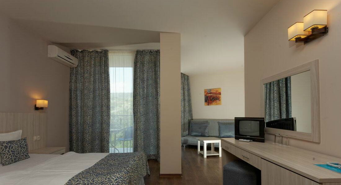 Отдыхала в данном отеле вдвоём с ребенком в июле 2016 года. Тур был на 14 дней по системе " все включено". В Болгарии была впервые и поэтому немного было страшновато, тем более одной с ребенком. Но как только нас встретили в аэропорту, все страхи прошли. Встречающая сторона была Аврора тур, гид Сюзанна ( на табличке кстати у нее другое название было написано, поэтому не сразу ее нашли, почти началась легкая паника). Хочу отметить, что это была ндинственная встреча с Сюзанной, ибо на назначенную встречу в отеле она не явилась дважды!! Перед отьездом нашли под дверью клочок бумажки с временем, во сколько нас заберут из отеля. А теперь об отеле: приехали мы в 12:00, а заселение с 14 часов. Нам разрешили оставить чемоданы в специальной комнатке и там же ребенок переодел купальник и мы пошли к бассейну. Заселили нас в итоге чуть раньше, в 13:30.Войдя в номер я была просто поражена, насколько номер новый, с евро ремонтом.В ттзывах читала, но думала это точно не про стандартные номера пишут.