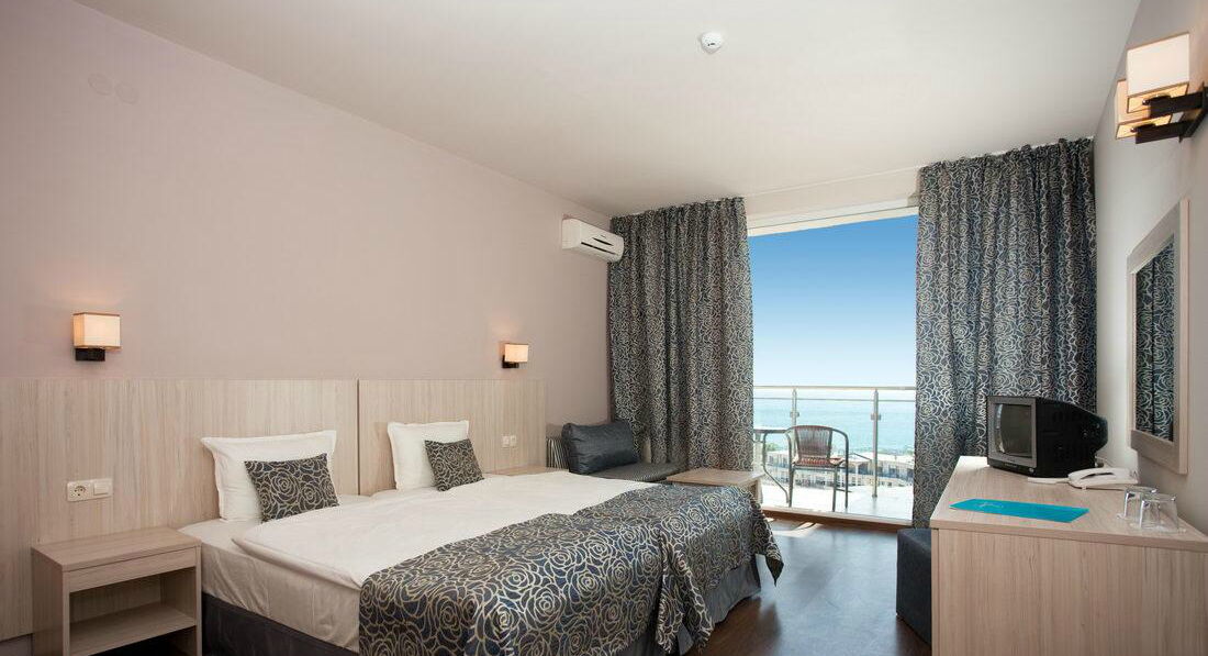 Отдыхали с женой в начале июня, в 2015 году. Номер был с видом на море. Вид с балкона потрясающий. Номер обычный, без излишеств. Не помешал бы ремонт в номерах. В ванной комнате болтался смеситель, протекала душевая кабинка и кое-что по мелочи. Убирались в номерах плохо, не помогали даже чаевые. Отель работал по принципу "все включено". Еда разнообразная, вкусная. Спиртные напитки не разбавленные. Аниматоры и персонал работали отлично. Было весело и взрослым и детям.