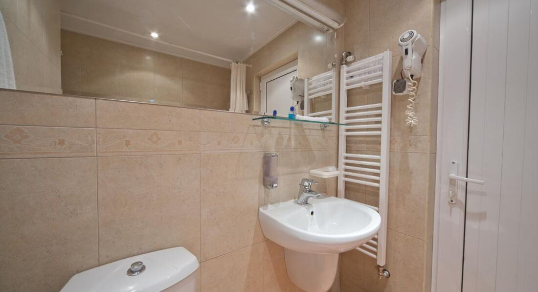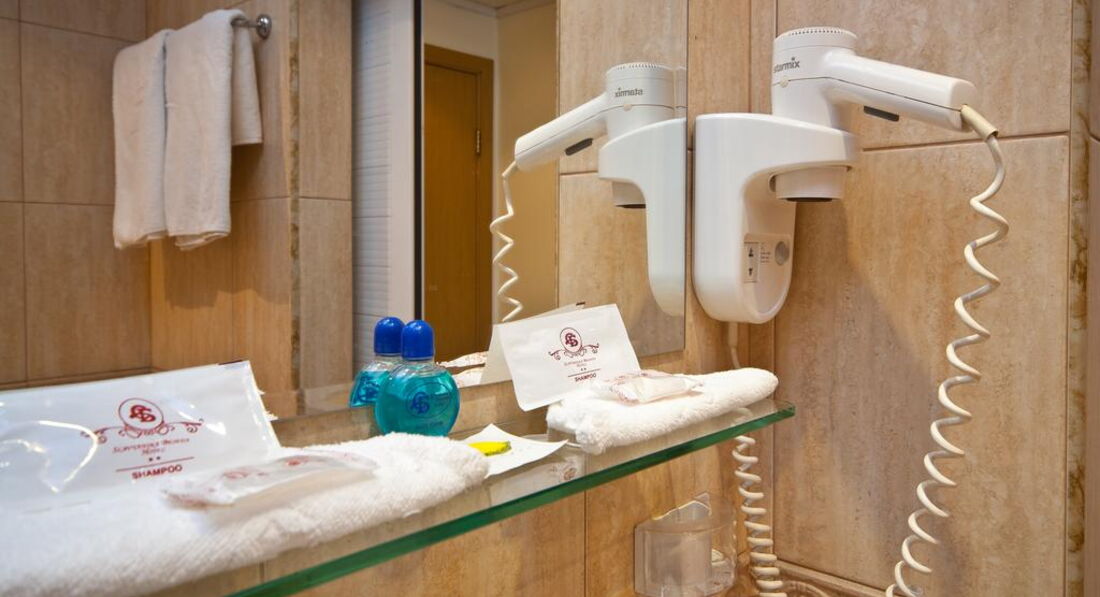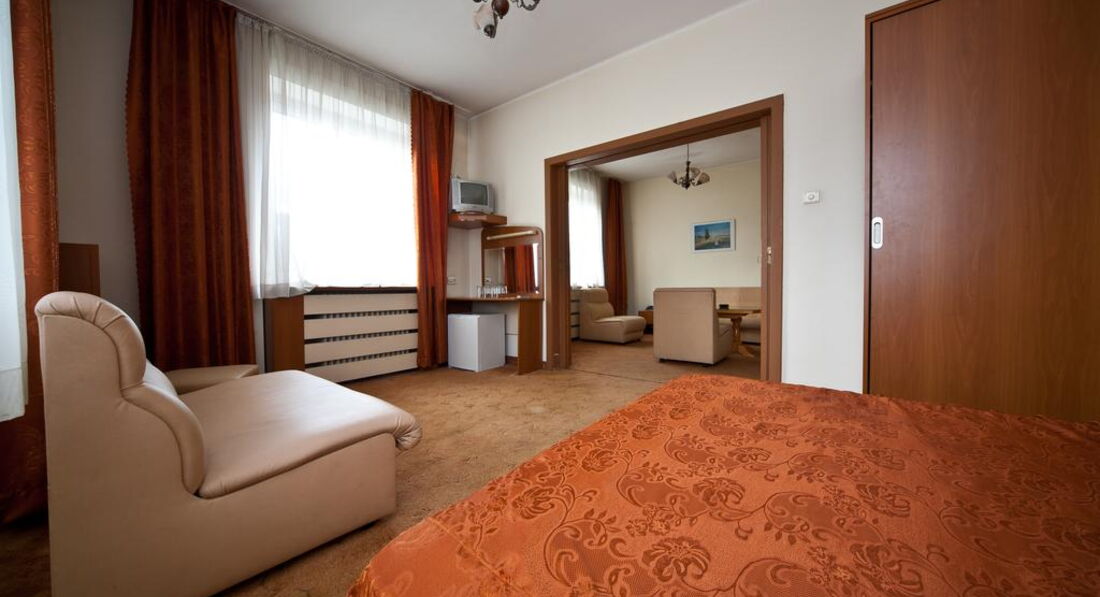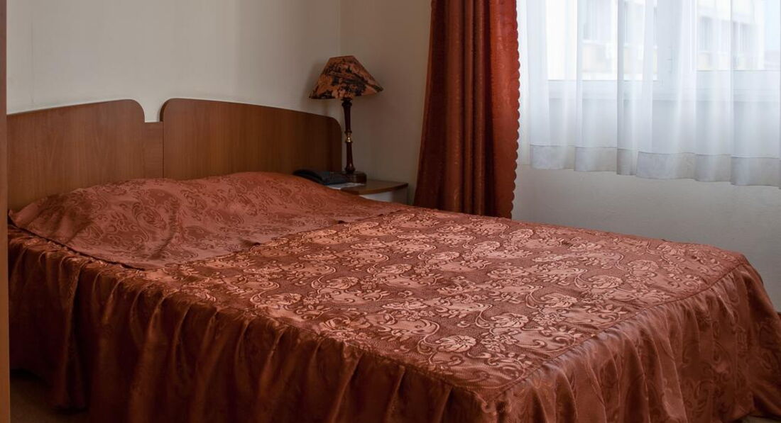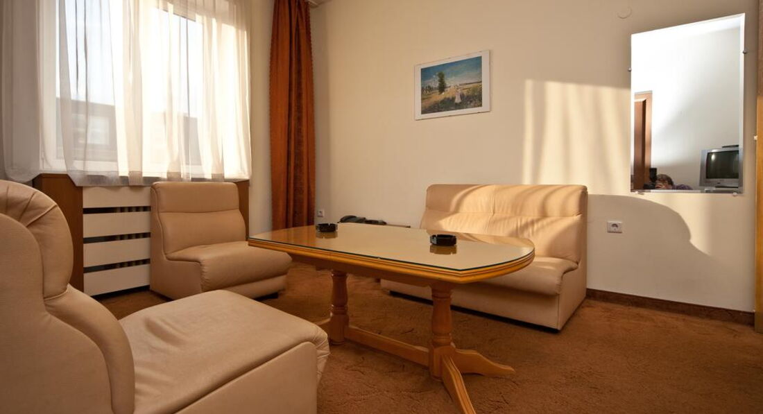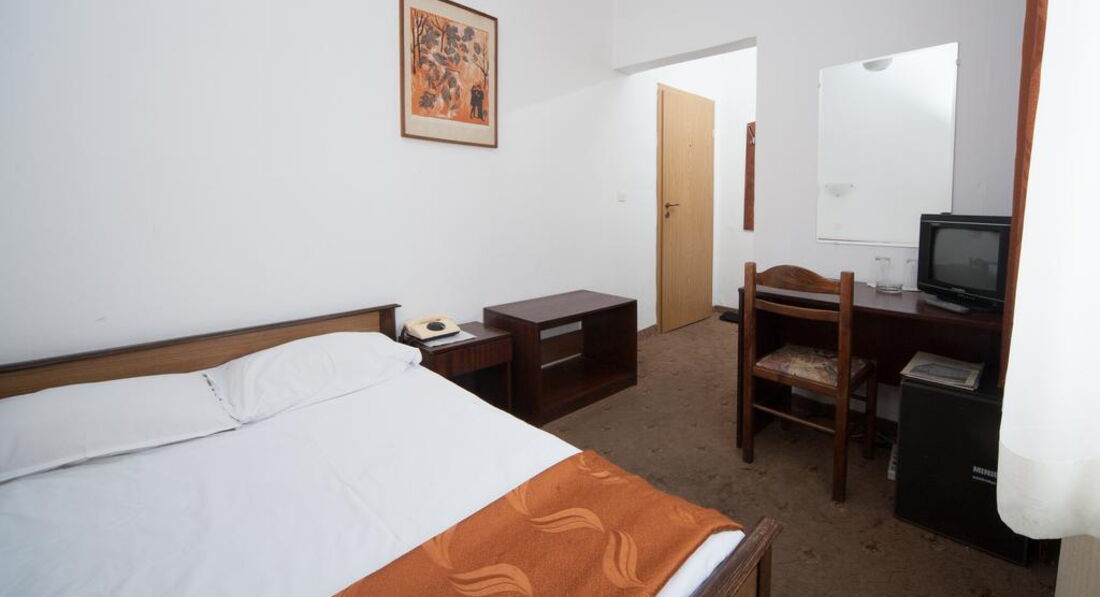 Теперь о самом отеле. Поселился я в номере 204. Конечно, после грандиозной Gloria атмосфера советского санатория для профсозников "СБ" меня подрасстроила. При заселении смутил тот момент, что вода в душе и раковине нагревается не сразу, а в течение минут пяти, да и Wi-Fi в номерах не тянет, зато он бесплатный и быстрый на рецепции (там вообще очень уютно), хотя пару дней его выбивало, а персонал не спешил решать эту проблему. Но, при этом, в номере было чистенько, ежедневно мне подкладывался шампунь, мыло, менялись полотенца и туалетная бумага. Раз в несколько дней менялась постель. Особенно порадовало нахождение в номере мини-бара, который я использовал, как холодильник и обилие розеток в очень удобных местах. Порадовало и обилие полезных ниш для вещей. В целом, не огорчила и шумоизоляции - с улицы я ничего не слышал. НО с пятницы по воскресенье по ночам в здании проходит дискотека часов с 23:00 до 05:00. Клубняк "тынц-тынц" отдает аж в подушку. Первую ночь промучился, а дальше уже сам стал участником этой вакханалии и приходил под утро, наплясавшись, как мартышка, моментально засыпал. В холодное время года и сырую погоду в отеле холодно, но у меня в номере работал кондиционер, я им прекрасно обогревался. В комплекте есть и телевизор с единственным русским Первым каналом. Рекомендую болгарское тв - оно интереснее.