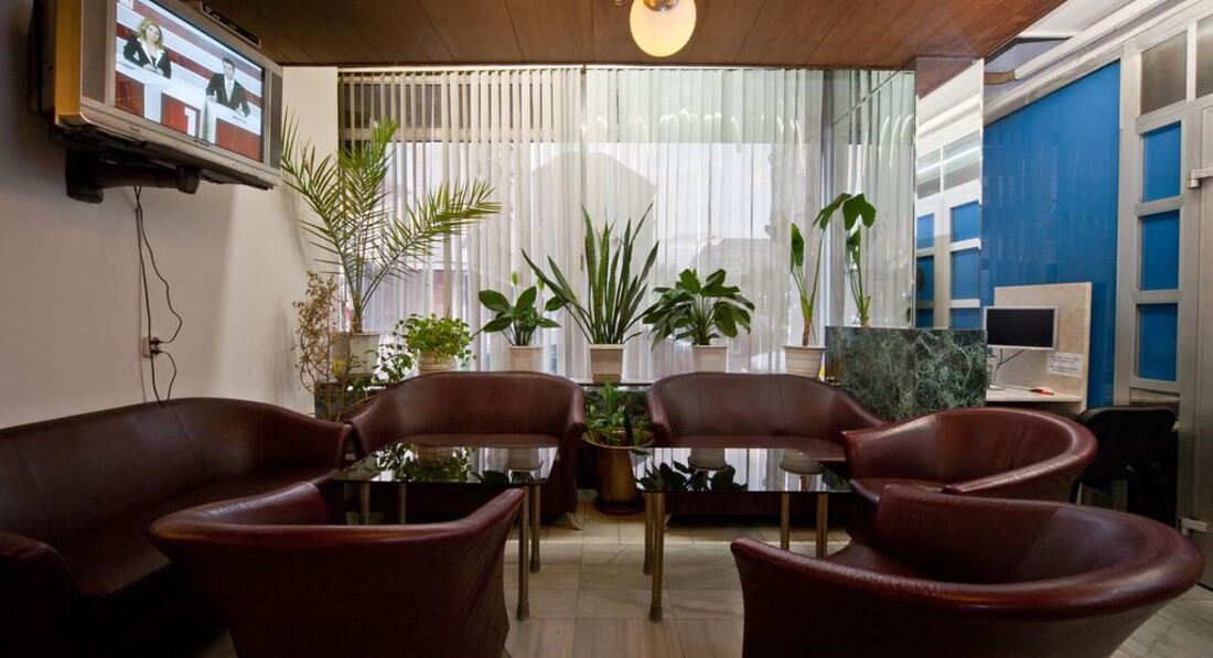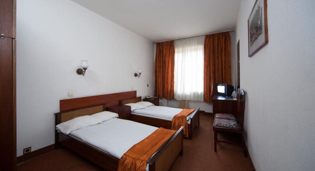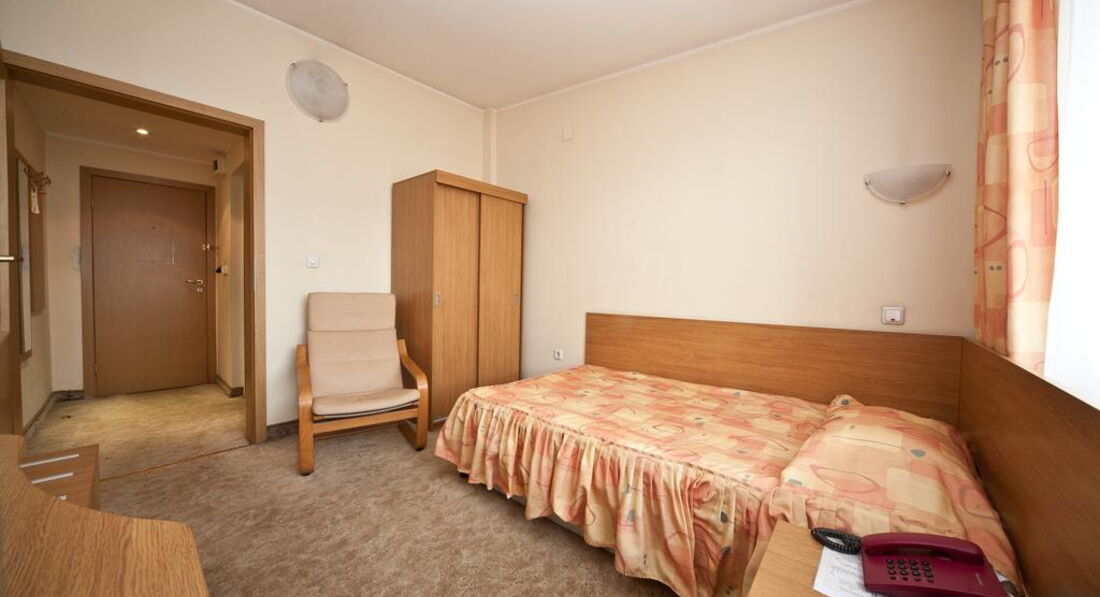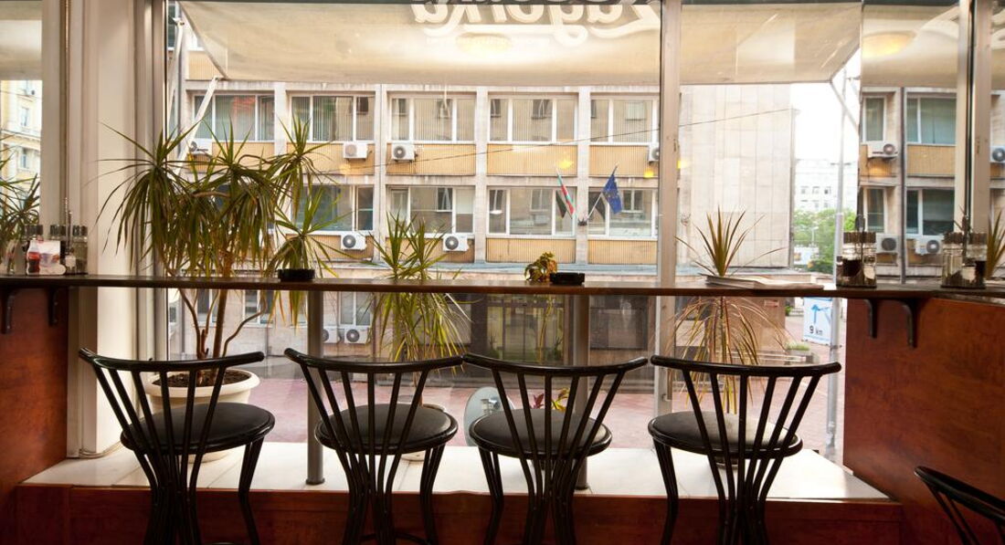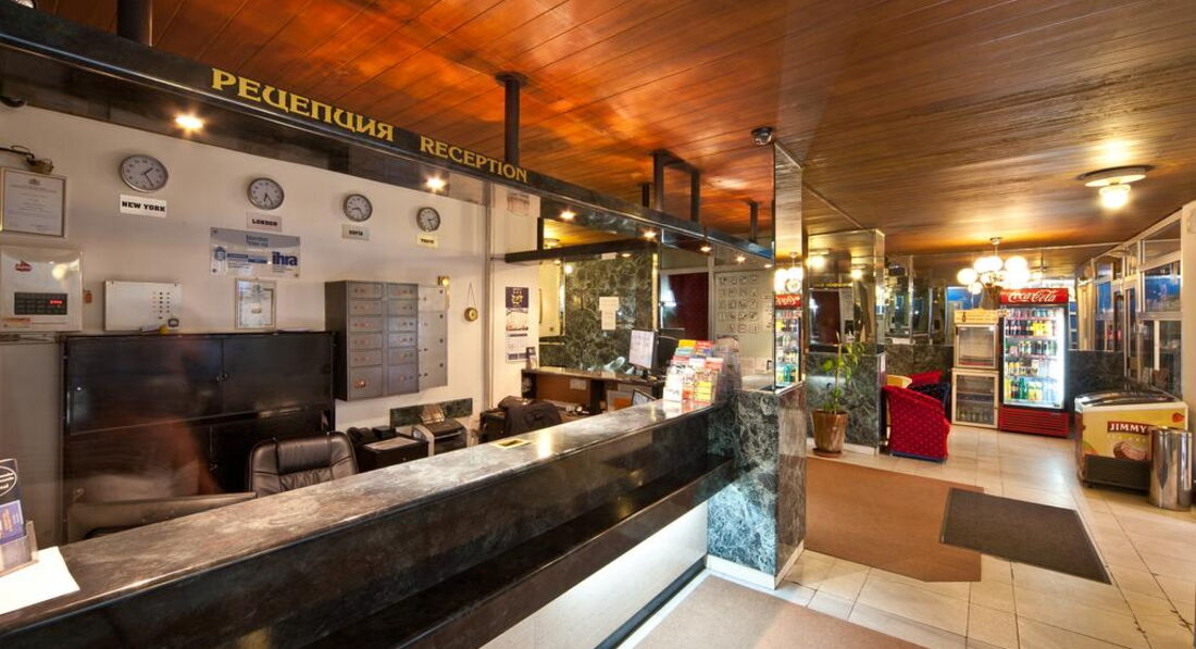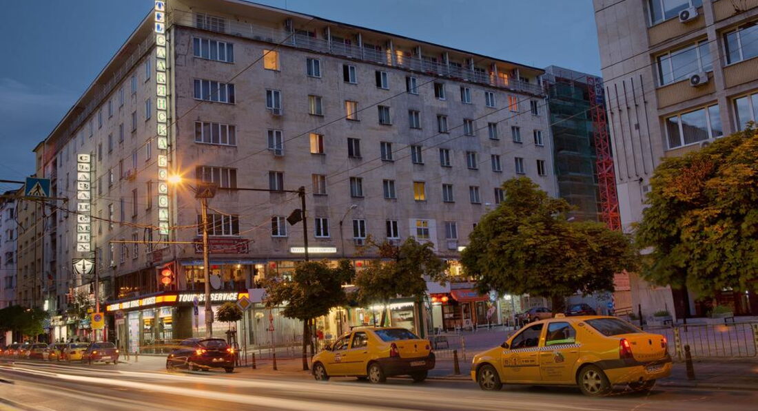 Была в этом отеле осенью в октябре 2011г., ездила по делам в командировку. Летала компанией Аэрофлот, рейс вылетал и прилетал без задержек из Шереметьева и из аэропорта Софии. И туда и обратно было много свободных мест, а бизнес класс был вообще пустой. Гостиница действительно находится в самом центре города от отеля в 15-20 минутах езды от аэропорта Софии. Общее впечатление об отеле среднее. Связано это с тем что, номера очень старые, сам отель маленький, буфет в котором завтракают без особых изысков. Служащие ресепшен говорят хоть и плохо по-русски, были весьма приветливы (предлагали два номера на выбор один на 1 этаже, второй на 5 этаже - с доплатой так как он был поновее и покомфортней и еще с балконом). Буфет с завтраком расположенана 2 этаже, рядом с китайским рестораном в котором можно пообедать и поужинать очень плотно, поскольку порции всех блюд очень большие, прямо как подносы(вес указан не менее 800 граммов в меню) и в основном с мясом всех видов. Обед обойдется примерно в 15 левов на человека (7 евро по болгарскому курсу). Буфет начинает работать с 7-00 до 10-00. На завтрак чай, кофе и молоко. Из горячего - омлет, яичница. вареные яйца и сосиски. Можно делать тосты с паштетом, сыром, джемом и маслом (которые расфасованы на порции). Есть не большая ваза с фруктами, но приходить надо пораньше, а то не хватит. Кстати были порезанные на дольки помидоры и свежие огурцы. Номер, я выбрала на 1 этаже, но не из-за экономии, а потому что там было тепло, но не так жарко как на 5 этаже и был душ, а не ванна, что мне понравилось больше. Мебель конечно очень старая, прямо коммунистическая, но зато кровать большая и с вполне чистым бельем. Уборку делают раз в неделю, но мусор выносят каждый день, меняют полотенца, пополняют мыло и шампунь. В номере есть мини-бар (а-ля холодильник саратов), но я им не пользовалась так как часто выходила в город и все покупала там. Телефоны у них в номере до сих пор дисковые, так что позвонить весьма проблематично учитывая сколько цифр нужно набрать и в каком порядке и лучше это делать с ресепшен. Из отеля можно вызвать такси до аэропорта и доехать максимум за 15 левов (таксисты очень ушлые особенно в аэропорту притворяются что не говорят по-русски что бы обмануть в оплате, нужно сразу обговорить что расплатитесь в левах, иначе в евро проезд будет в 2 раза дороже и ищите русско говорящих).