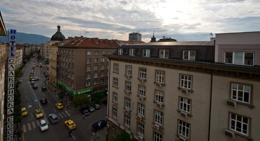 Моему попаданию в этот отель предшествовала очень неприятная истории я с туроператорами "Библио Глобус" и BON TOUR. В двух словах, ситуация была такая. Купил турпродукт с проживанием в отеле Gloria Palace на бул.Мария Луиза, 20. Накануне вылета "Библио Глобус" подтвердил мою бронь в этом отеле по этому адресу. Я приехал в 20-й дом на бул.Мария Луиза и на месте обнаружил, что меня тут... ну вообще не ждут. Оказалось, что по халатности оператора мне была продана путевка в другой одноименный отель на окраине Софии (при том, что адрес указан указан в ваучере в центре, накануне этот адрес подтвердил туроператор в Москве). На окраину я ехать отказался и потребовал, чтоб меня либо оставили в этом же отеле, либо подобрали аналогичное место в центре без доплат и в скором времени. К вчеру мне предложили, как аналог "Славянскую беседу", бодаться сил уже не было и пошел я с чемоданом на Славянскую ул. Уставшему и с багажом этот путь показался мытарствами Христа в пустыне (хотя потом добегал от отеля до метро "Сердика" минут ну за 10 максимум).