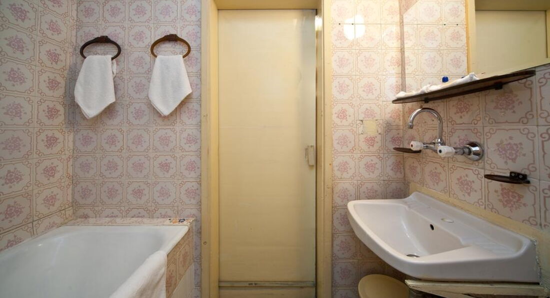 Приехали в 22 часа 23/01/2015 на ж.д вокзал поездом из Бухареста. Взяли такси и через 10 минут были в отеле. В связи с поздним визитом деньги поменять было уже невозможно и мы решили не заморачиваться по этому поводу и лечь спать без ужина. В отеле нас быстро оформили и дали ключи от номера 309. Старенький лифт неспешно доставил нас к месту нашего ночлега. Номер как и было понятно из стоимости отеля был довольно скромным и как говориться "видавшим виды". Мы были к этому готовы, так как заплатили за две ночи в центре Болгарской столицы 45 EUR. Соответственно оценивать отель необходимо именно исходя из этой более чем скромной стоимости.